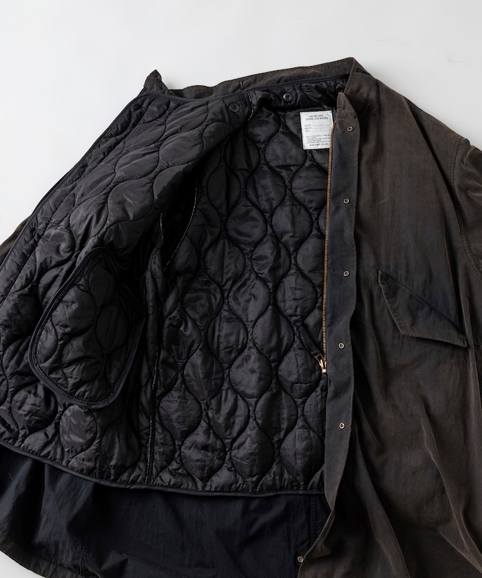 베이직 M-65 필드코트를 제품 가공 하여 독특한 페이드 느낌을 구현한 재킷. 라이너는 탈부착 가능하며 오버사이즈 실루엣입니다.