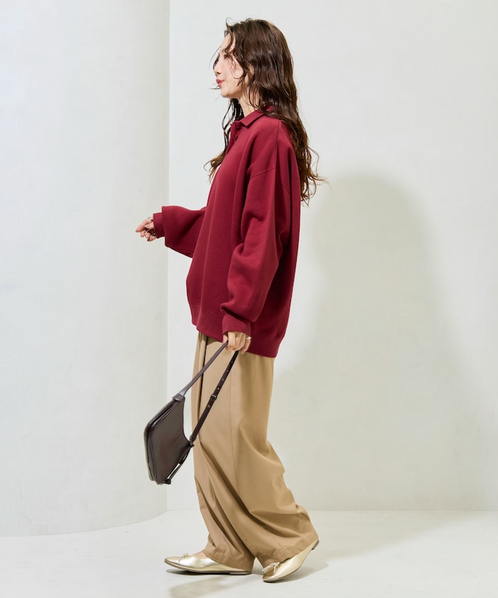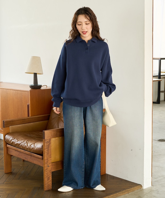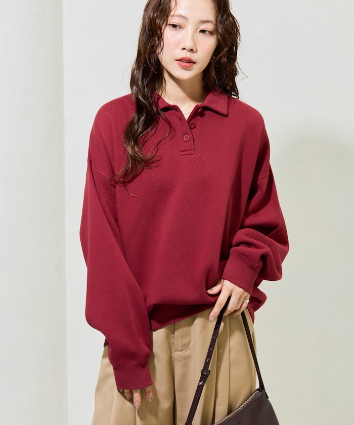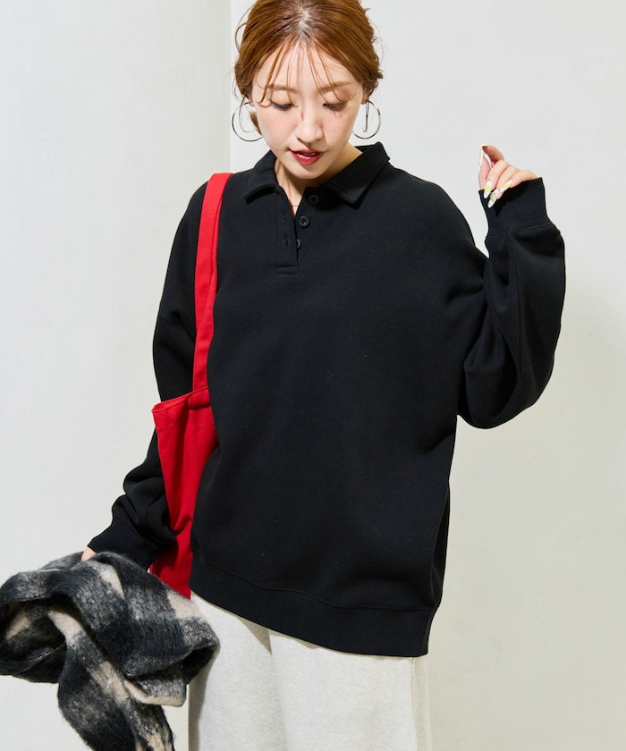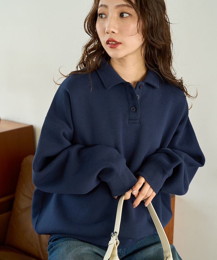 폴로 칼라 디자인으로 심플한 스웨트 티. 안감 기모 소재로 겨울에도 따뜻하게 입을 수 있습니다.