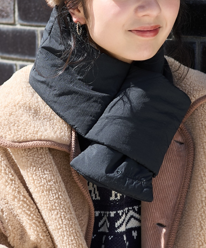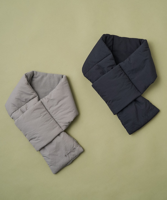 다운처럼 부드럽고 보온성이 뛰어난 PRIMALOFT 충전재의 머플러. 한쪽을 끼워 고정하는 슬립인 디자인이며 한쪽 끝에 소형 포켓이 있습니다.