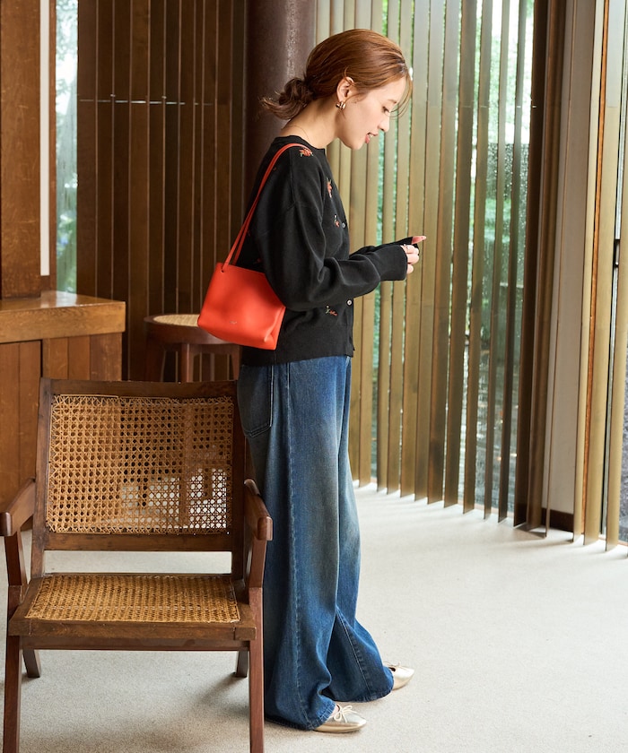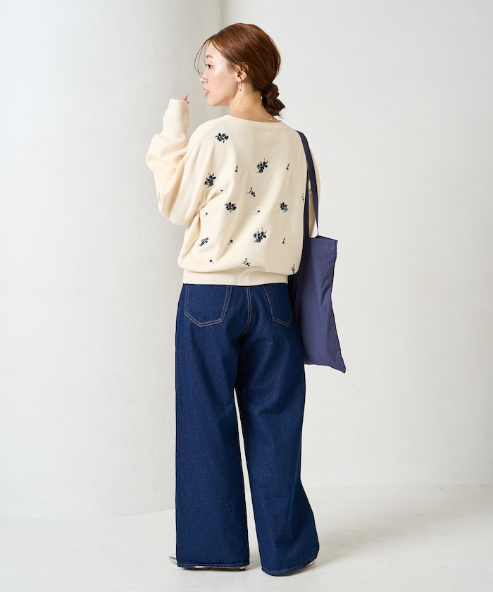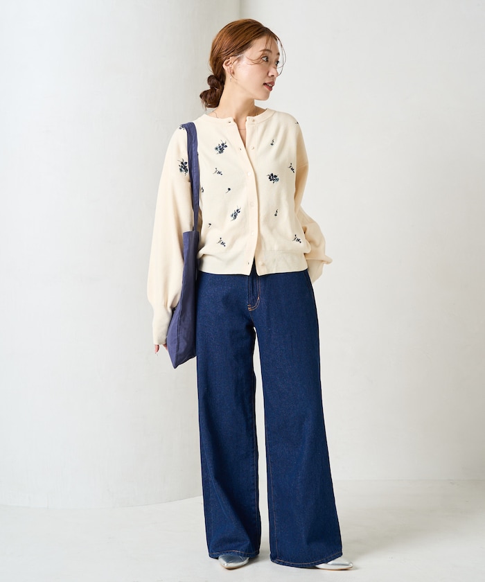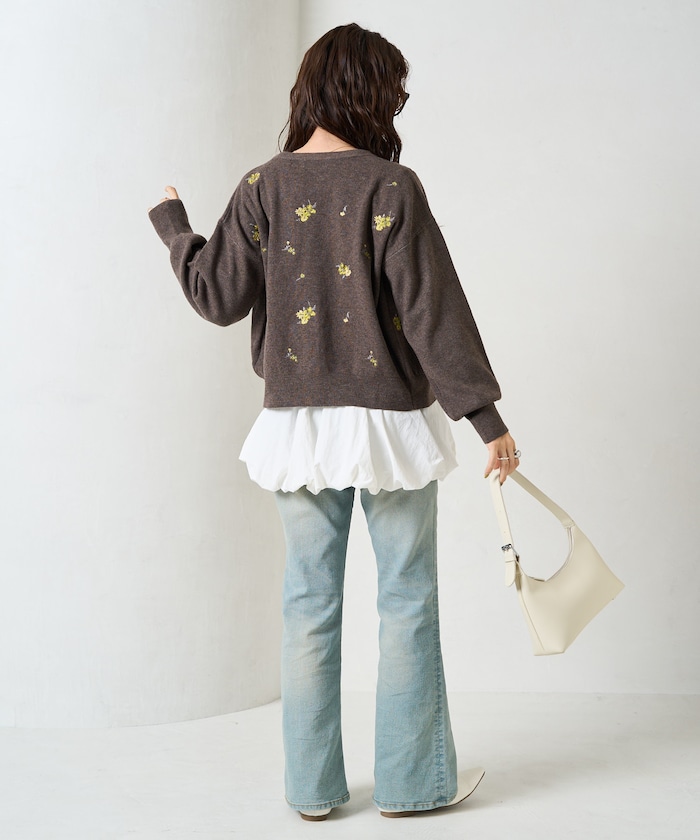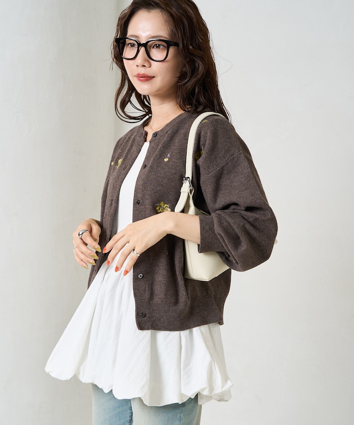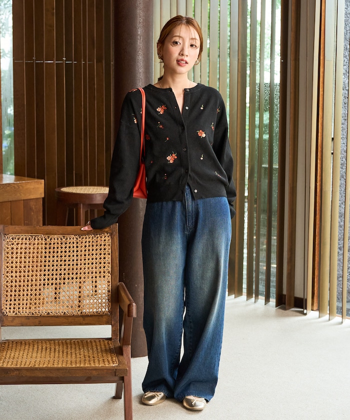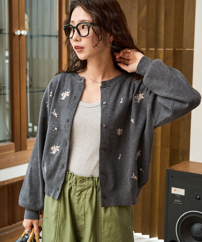 앞뒷면에 플라워 자수가 있는 니트 가디건.