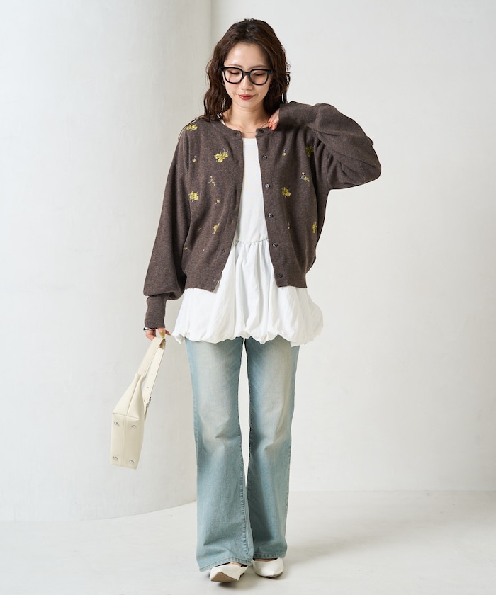 프릭스스토어 플라워 자수 니트 가디건