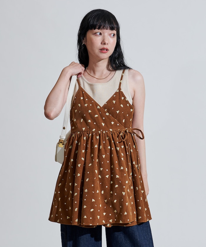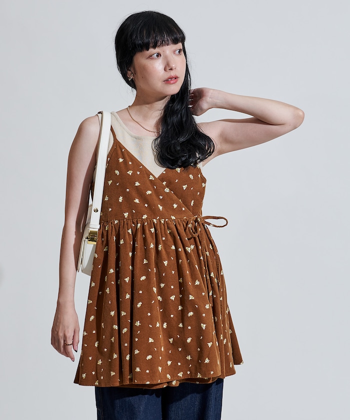 A라인으로 퍼지는 랩 스타일의 캐미솔