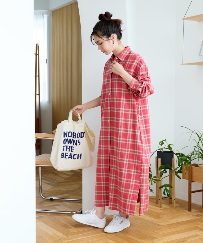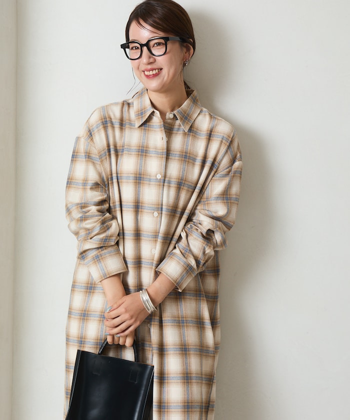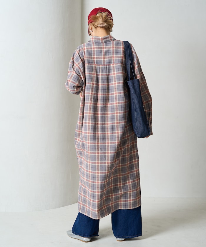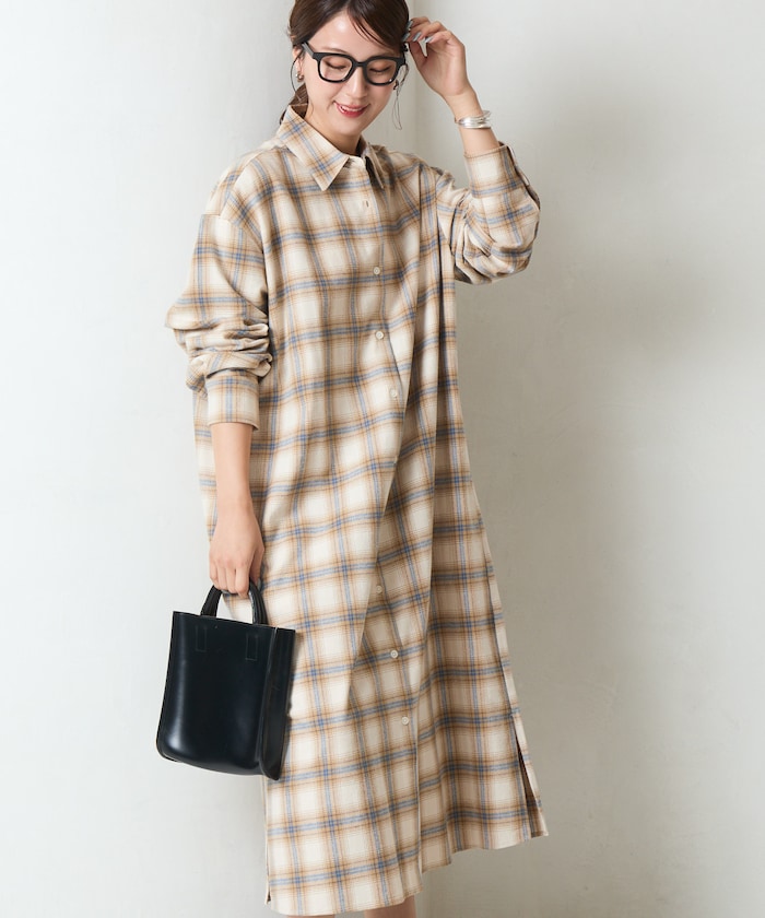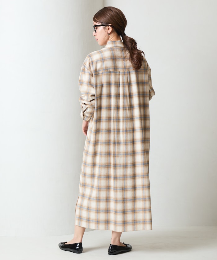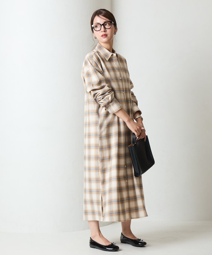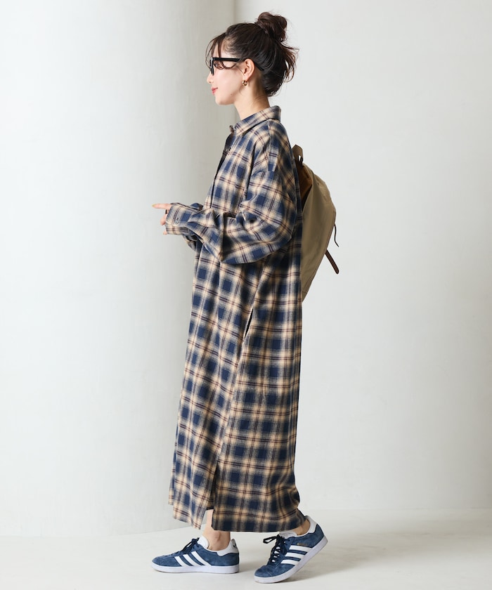 부드럽고 폭신한 플란넬 소재의 원피스. 사이드 포켓이 있으며 종아리까지 내려오는 긴 길이입니다.