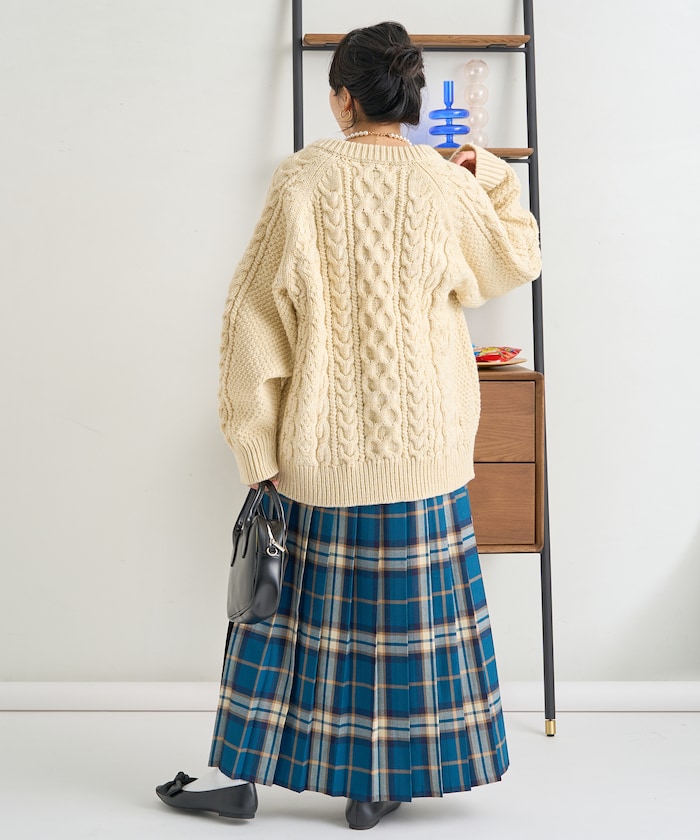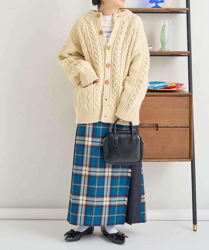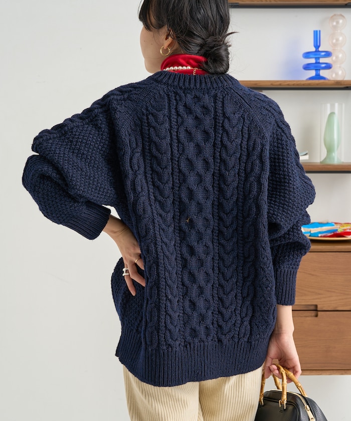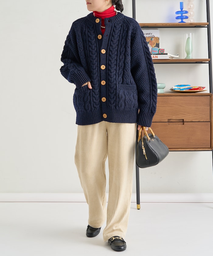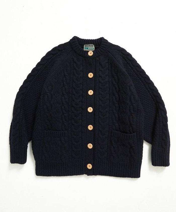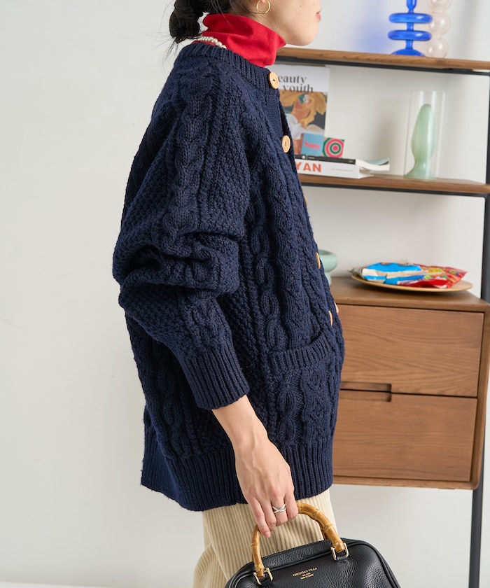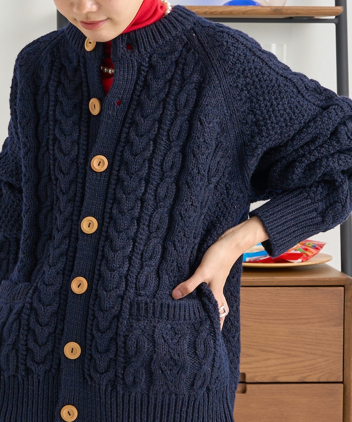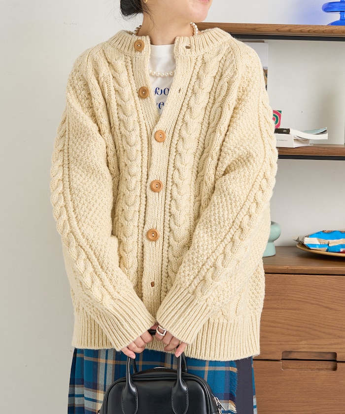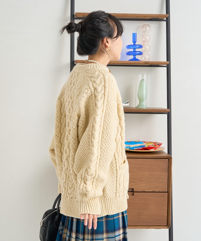 전통적인 아란 니트 패턴 을 재현한 디자인의 니트 가디건
