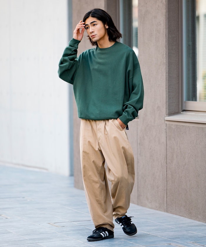12온스 헤비웨이트 원단을 사용하여 탄탄한 착용감과 뛰어난 보온성을 제공합니다. 넉넉한 품과 드롭 숄더로 여유 있는 실루엣이며 안감은 기모 처리된 헤비웨이트 원단으로 겨울철에도 따뜻하게 착용할 수 있습니다.