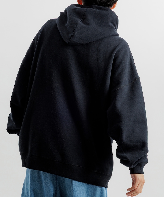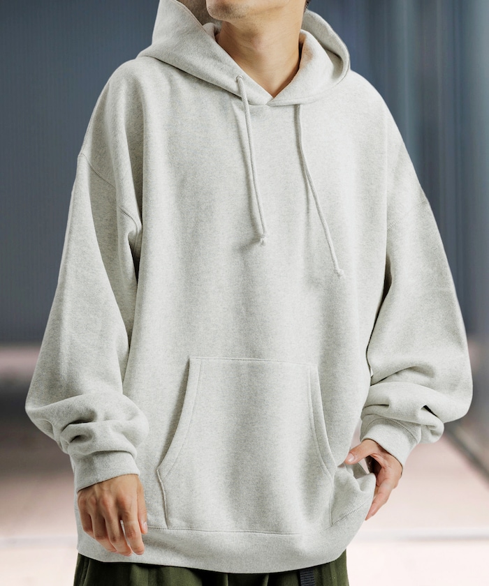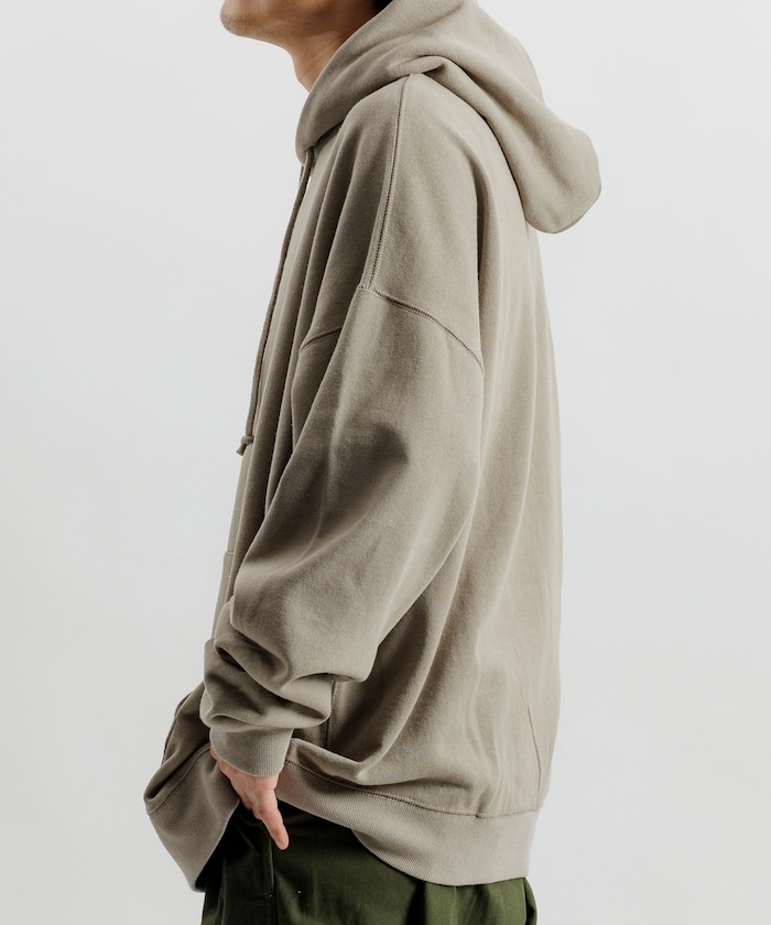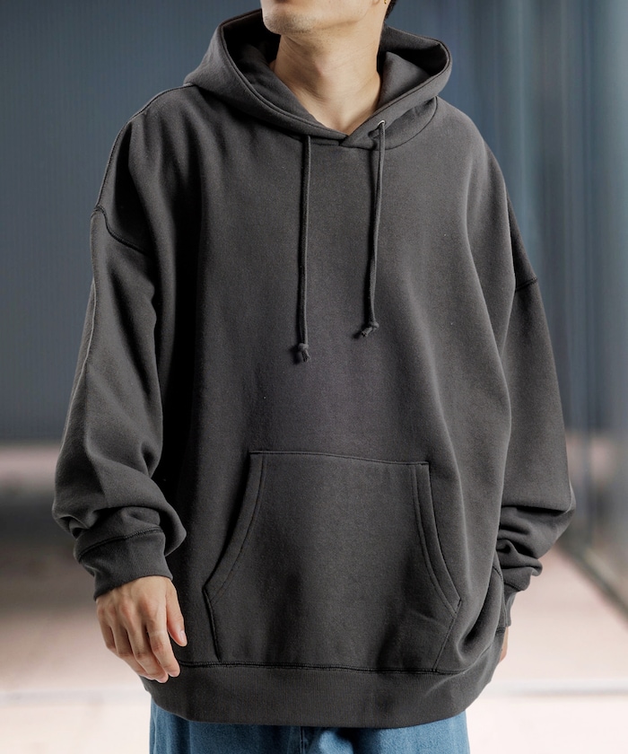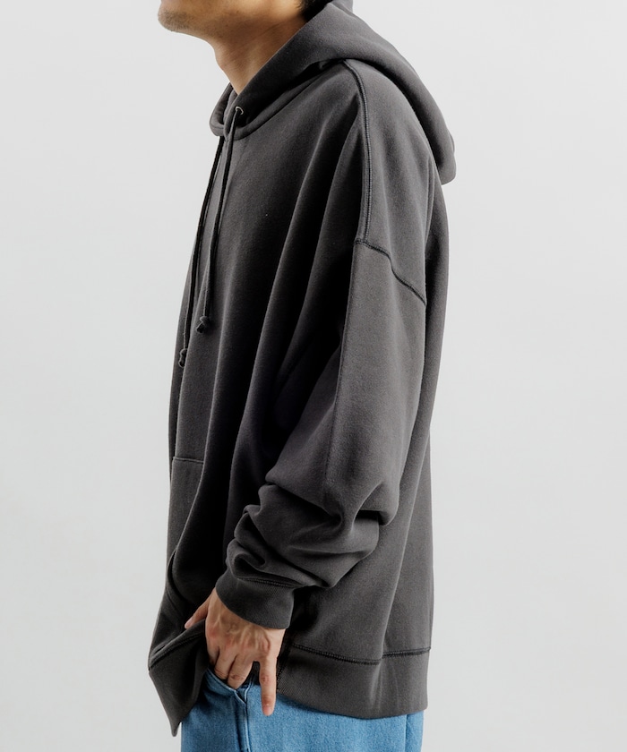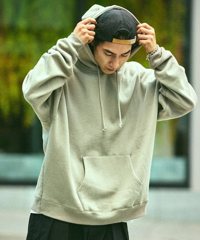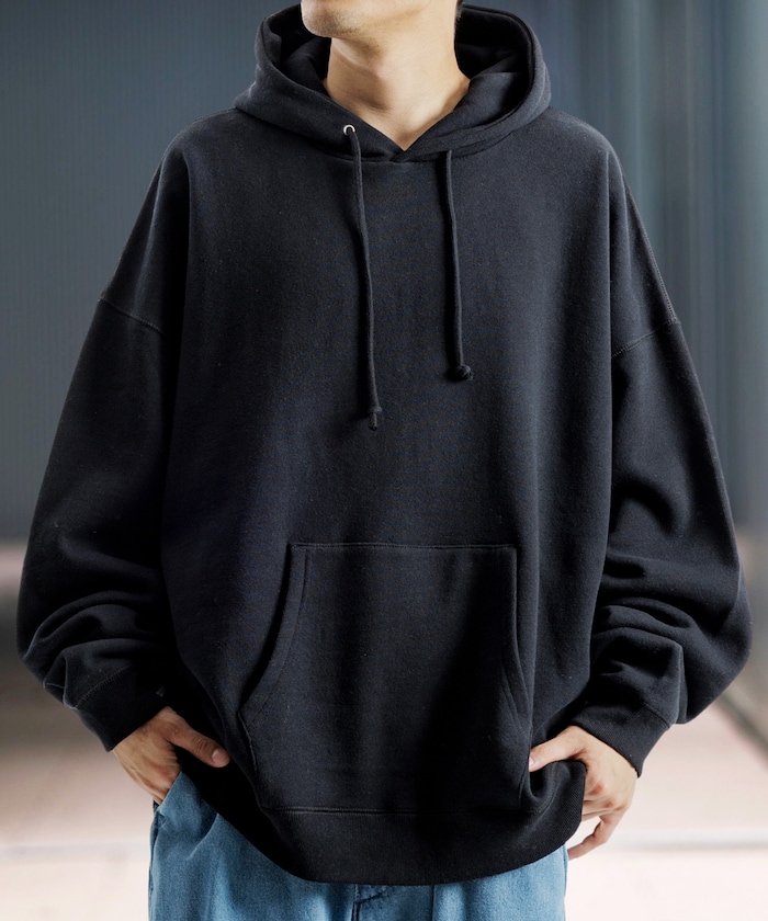 12온스 헤비웨이트 원단을 사용한 풀오버 후디로, 따뜻하고 탄탄한 착용감이 특징입니다. 넉넉한 몸통 폭과 드롭 숄더 디자인의 빅 실루엣이며 안감 기모 처리로 보온성이 뛰어납니다.