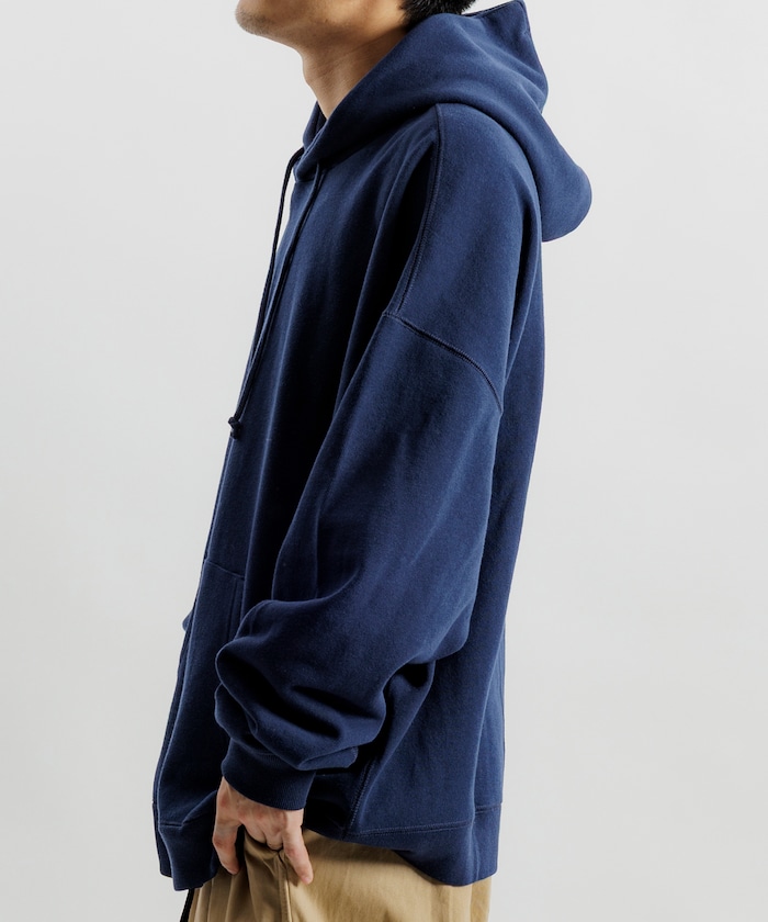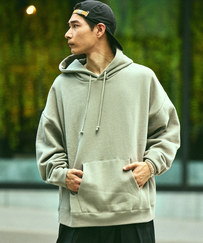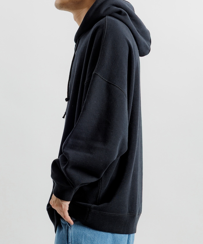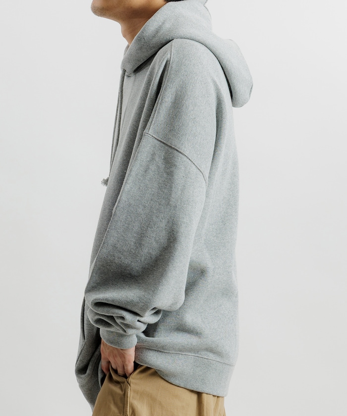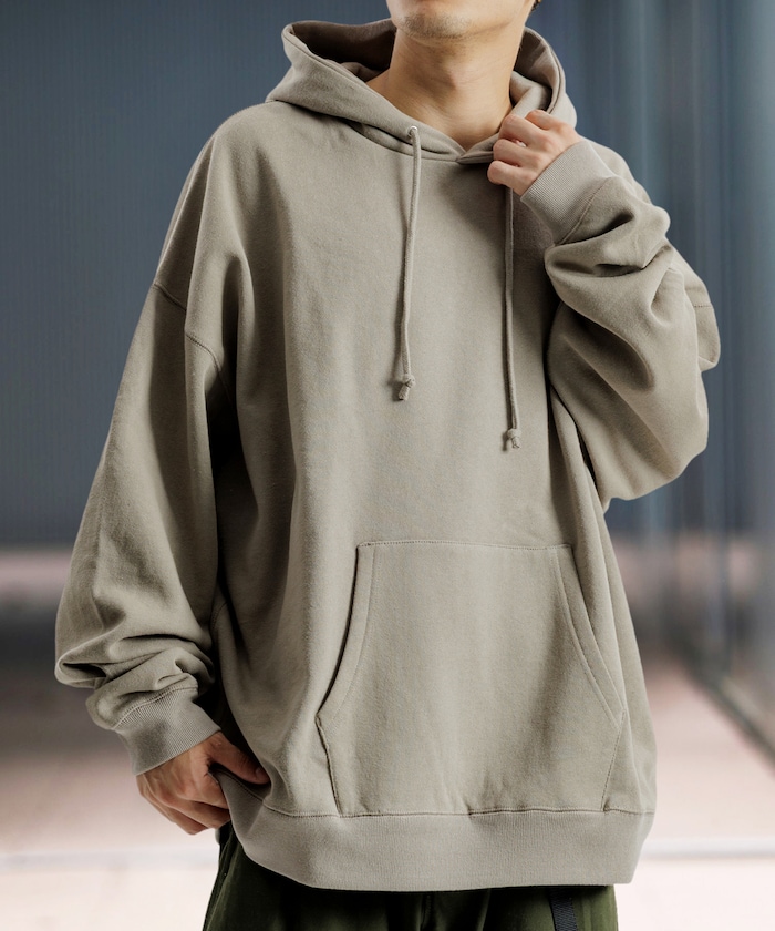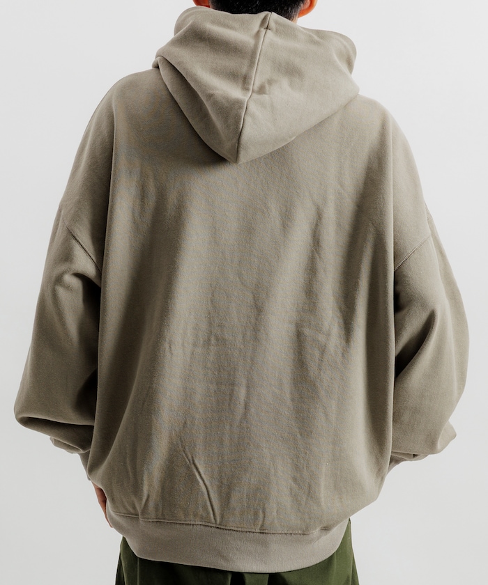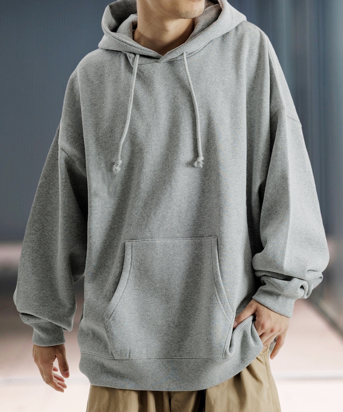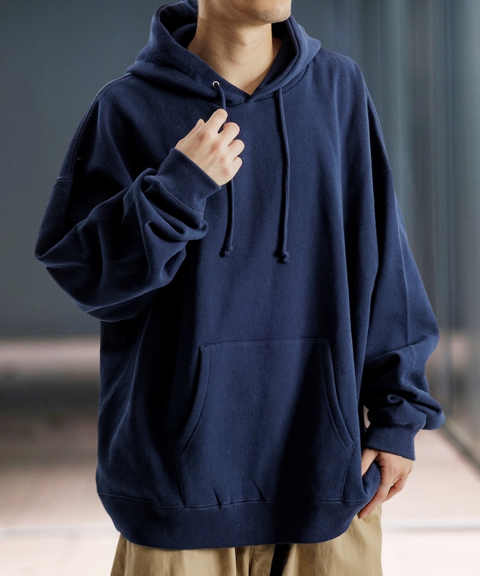 12온스 헤비웨이트 원단을 사용한 풀오버 후디로, 따뜻하고 탄탄한 착용감이 특징입니다. 넉넉한 몸통 폭과 드롭 숄더 디자인의 빅 실루엣이며 안감 기모 처리로 보온성이 뛰어납니다.