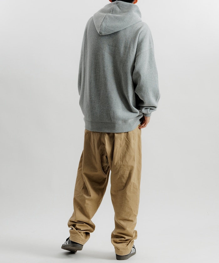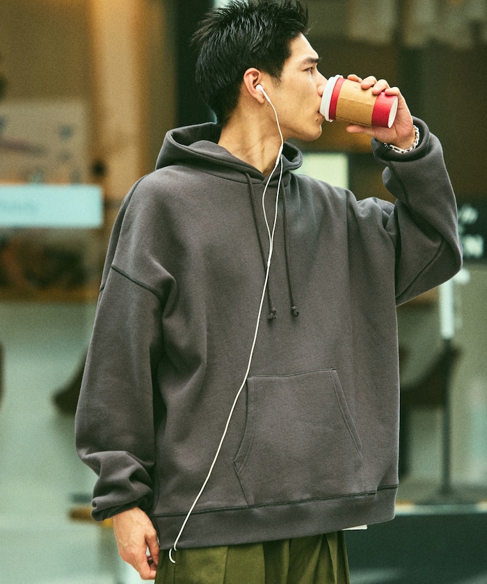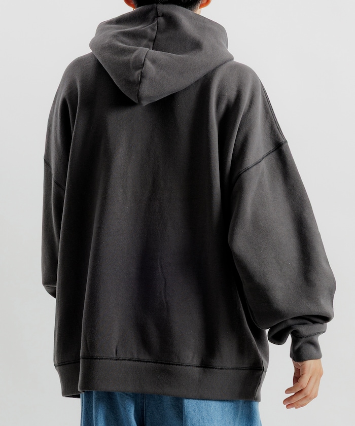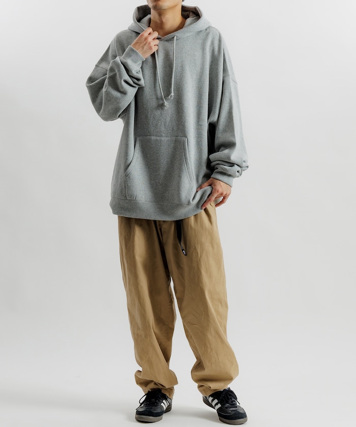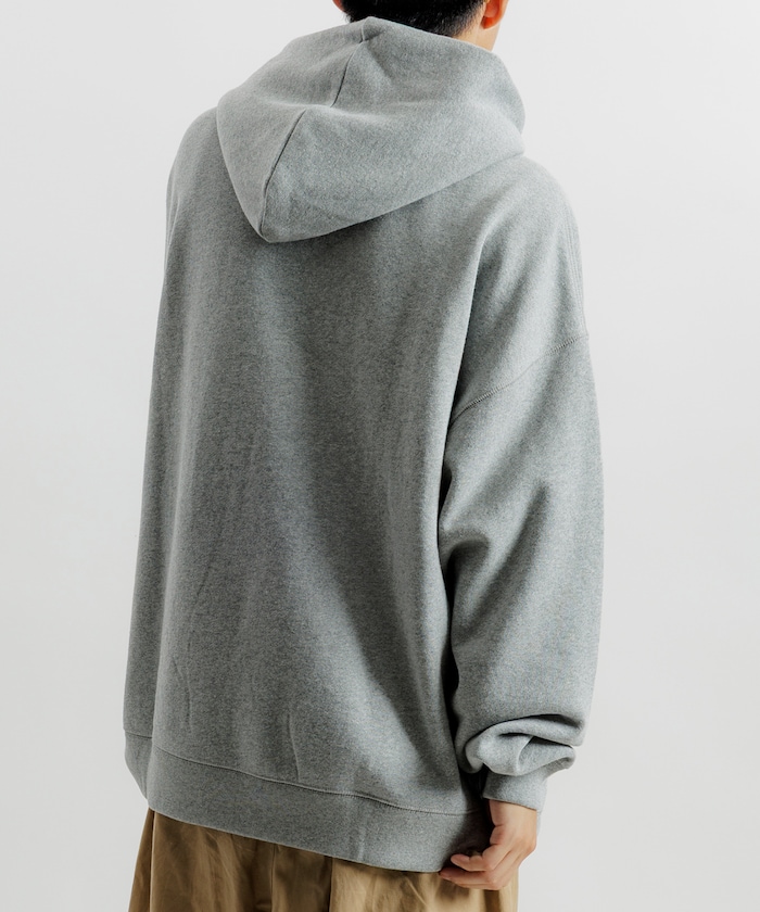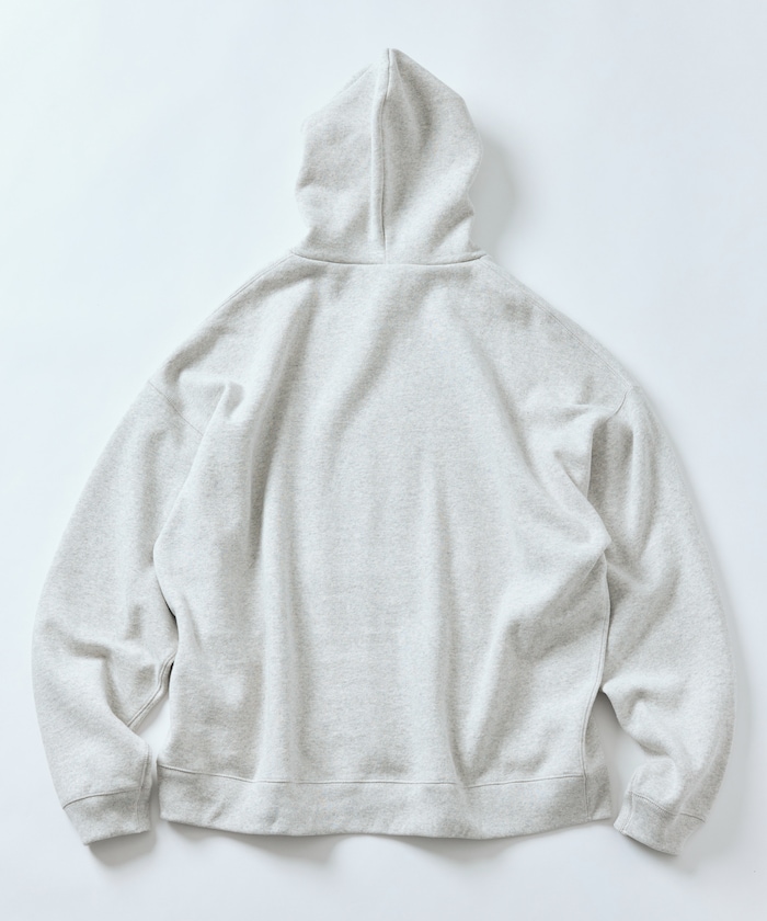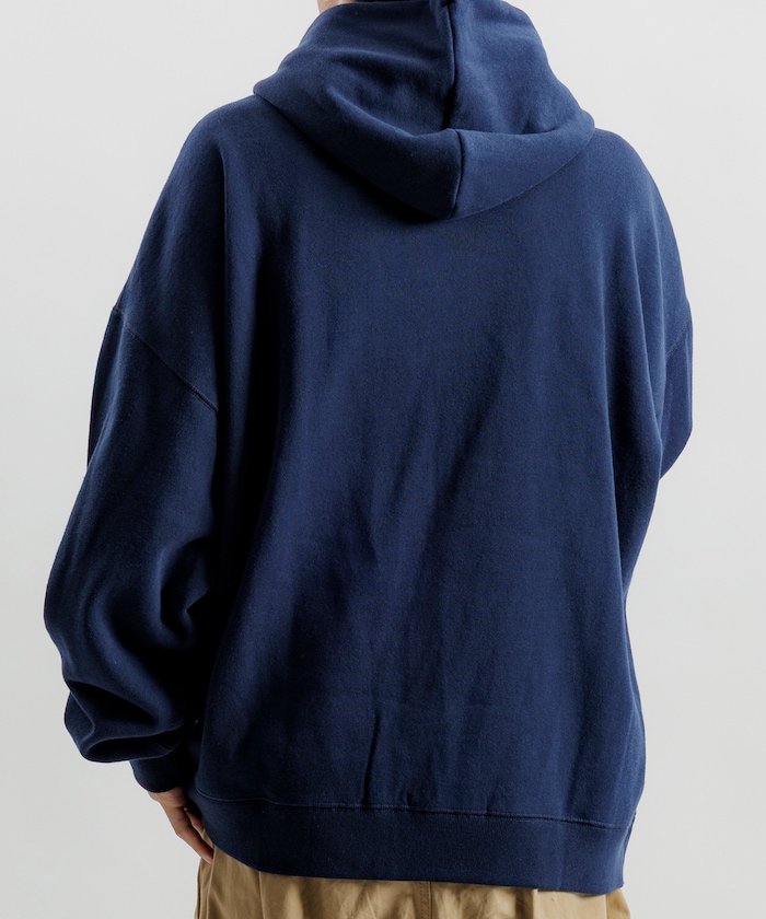 12온스 헤비웨이트 원단을 사용한 풀오버 후디로, 따뜻하고 탄탄한 착용감이 특징입니다. 넉넉한 몸통 폭과 드롭 숄더 디자인의 빅 실루엣이며 안감 기모 처리로 보온성이 뛰어납니다.