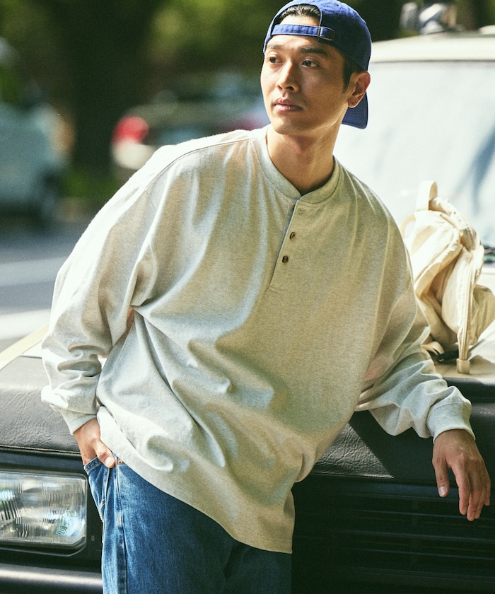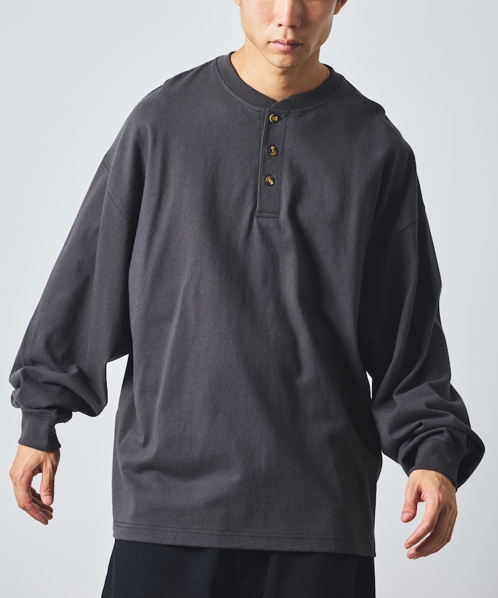 9oz의 헤비웨이트 소재를 사용한 헨리넥 티. 품과 암홀에 여유가 있는 빅 실루엣입니다.