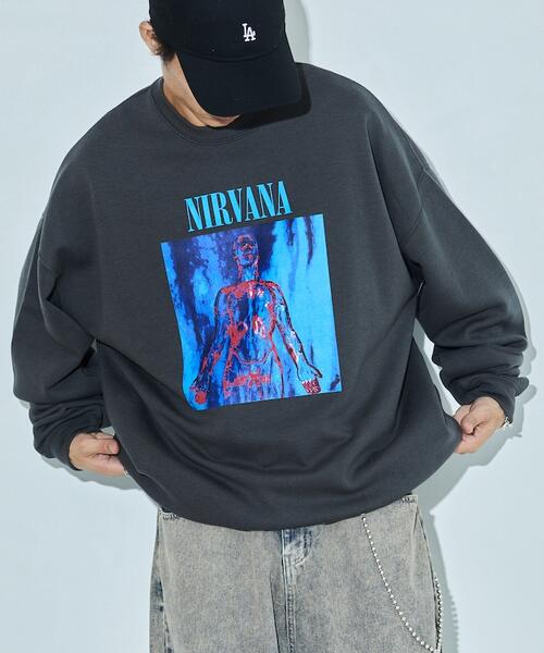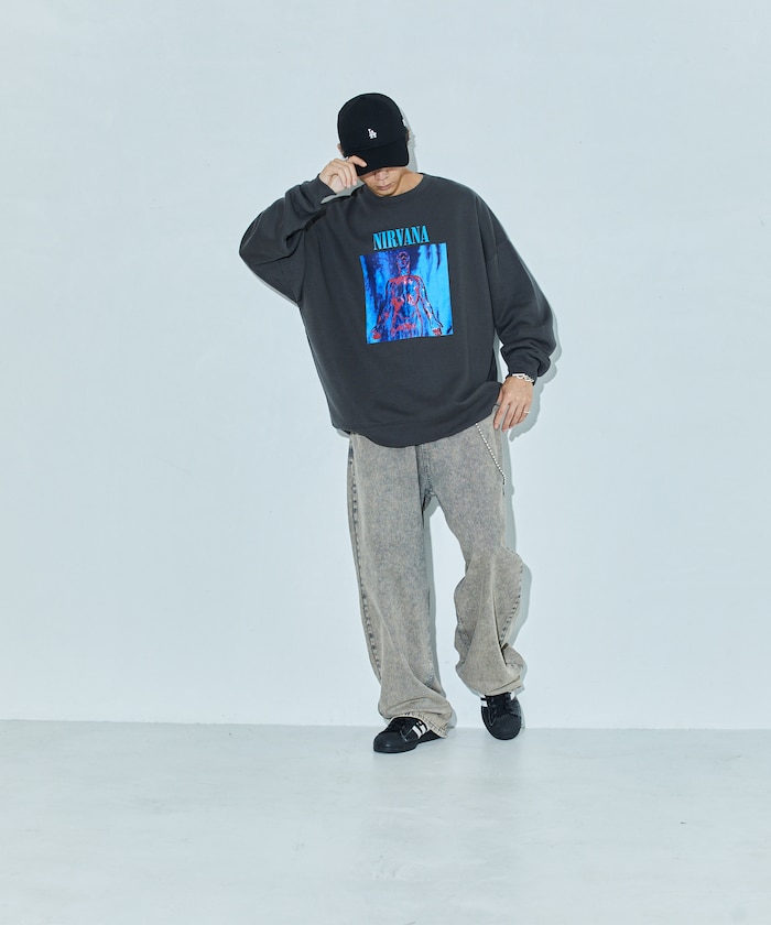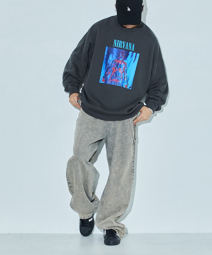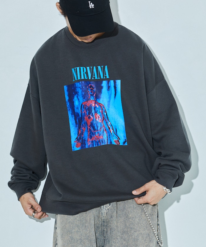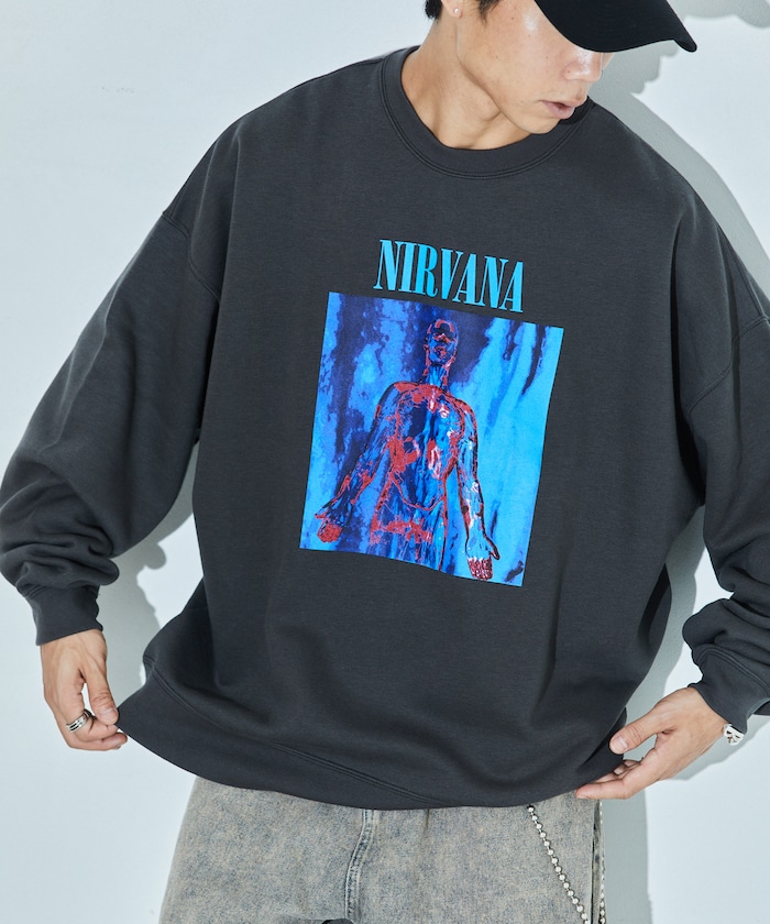 세계적으로 유명한 록 밴드 【NIRVANA】의 그래픽을 디자인한 스웨트 티. 큰 실루엣의 사이즈와 임팩트 있는 디자인입니다.