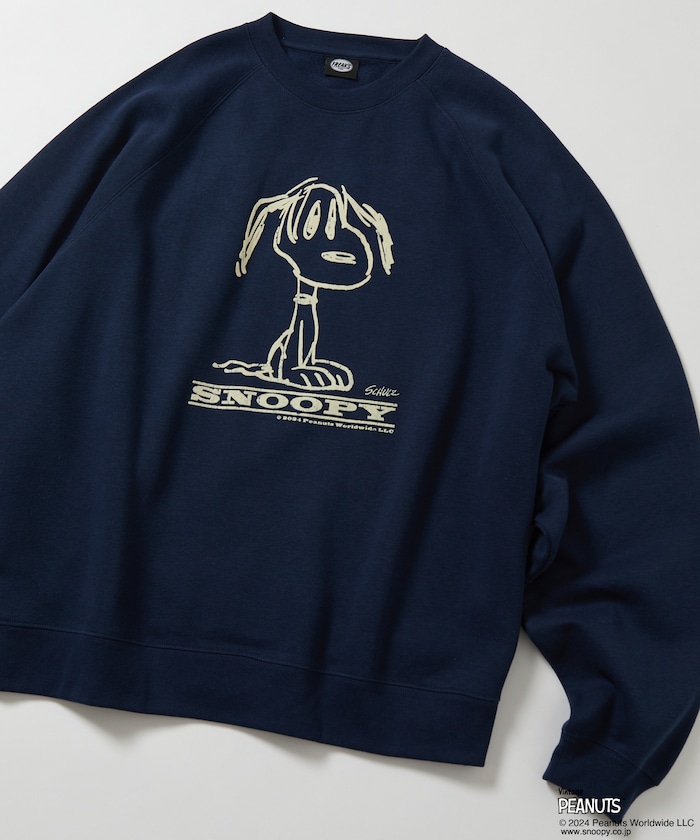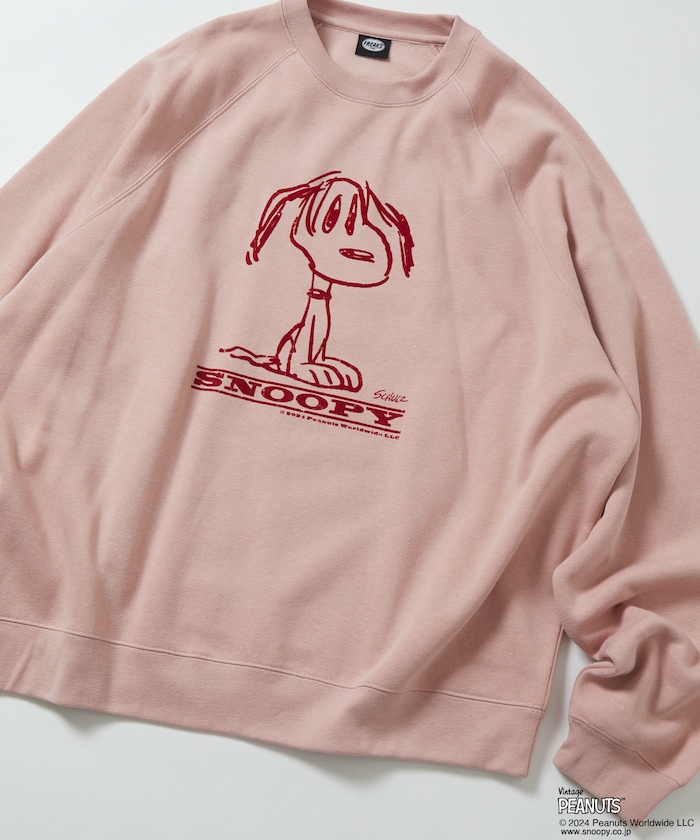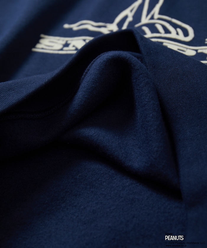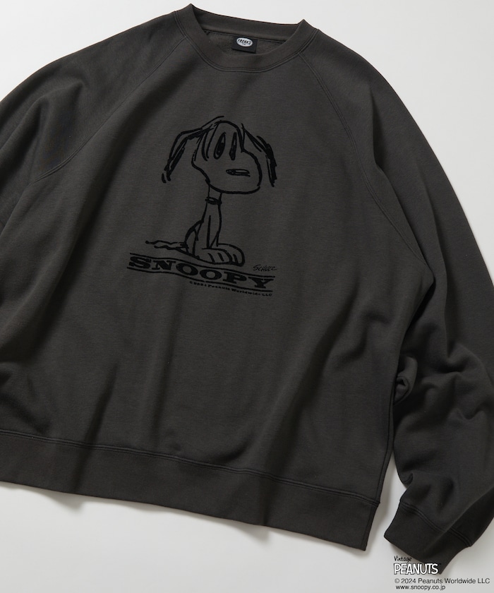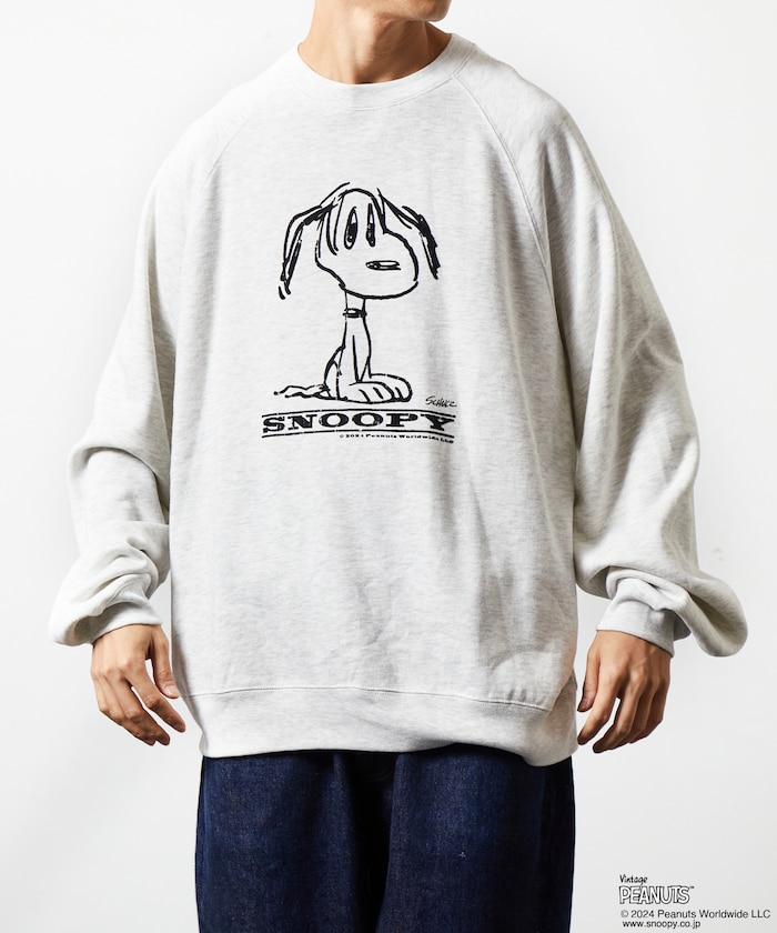 PEANUTS의 프린트 티. 빈티지한 느김의 스누피 그래픽이 있는 적당한 빅 실루엣의 티