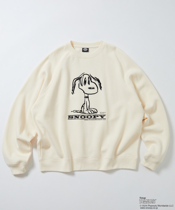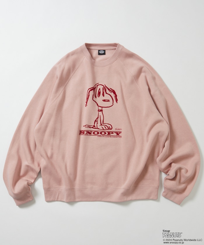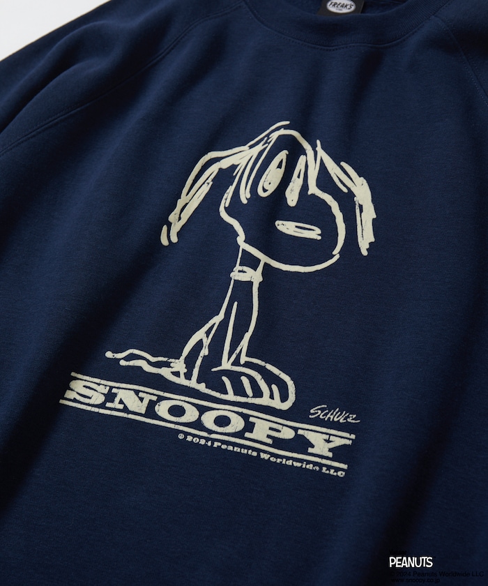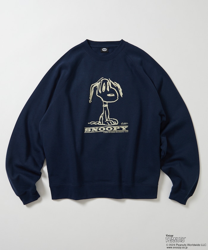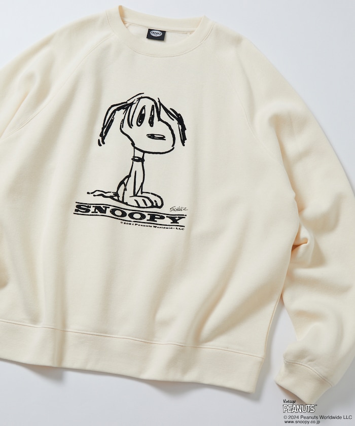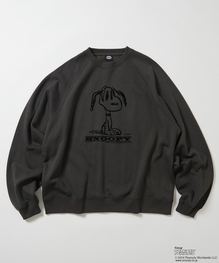 PEANUTS의 프린트 티. 빈티지한 느김의 스누피 그래픽이 있는 적당한 빅 실루엣의 티