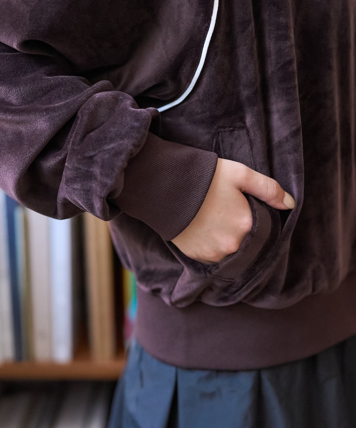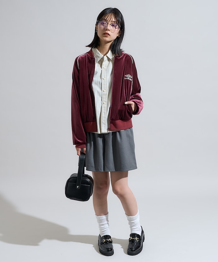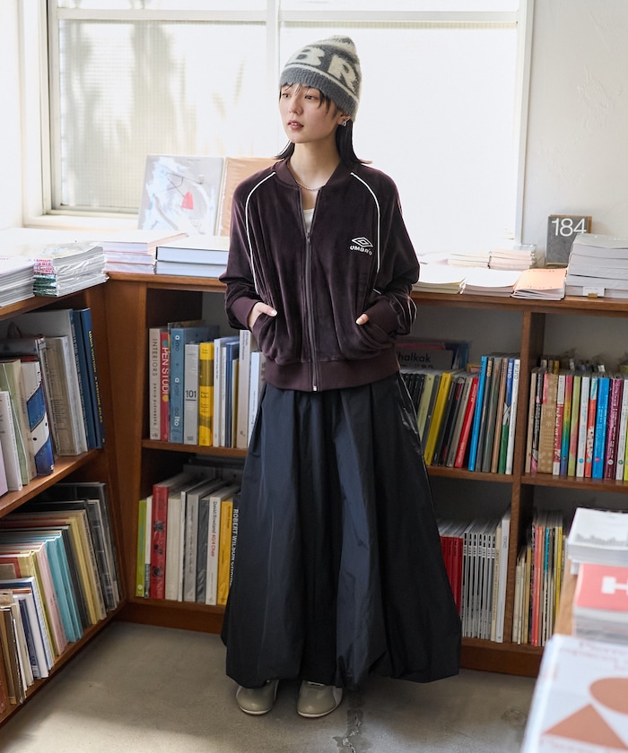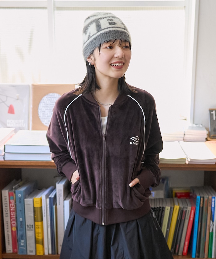 영국 축구 브랜드 UMBRO와의 스페셜 콜라보 아이템입니다. 원포인트 자수와 라인 디테일이 돋보이는 심플하면서 세련된 디자인이 특징입니다. 은은한 광택이 감도는 벨벳 소재로 가을 겨울 입기 좋습니다.