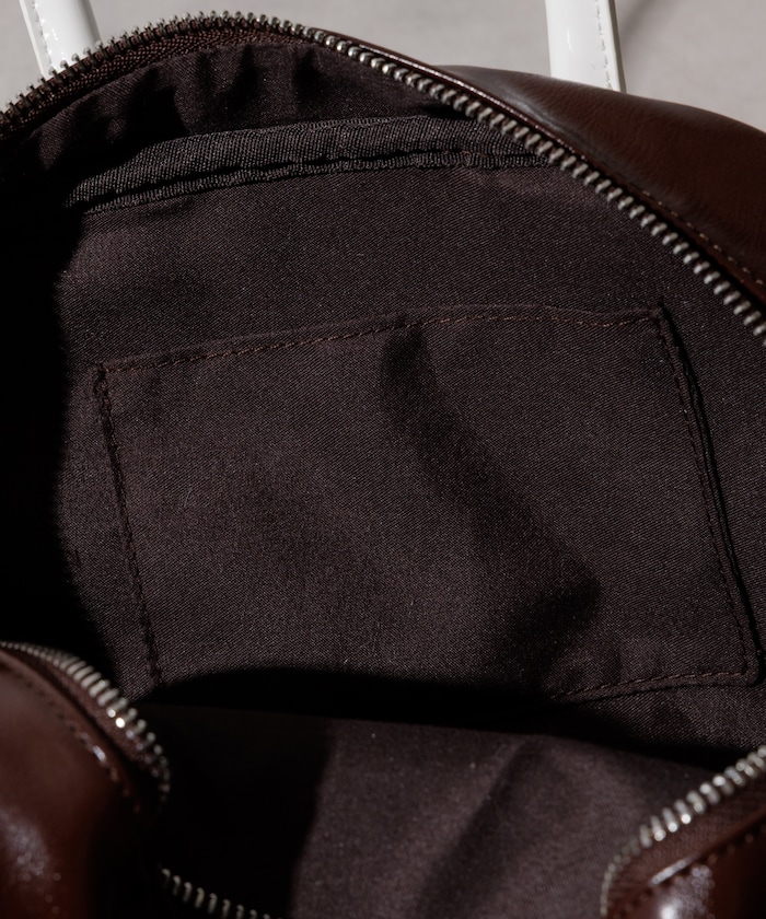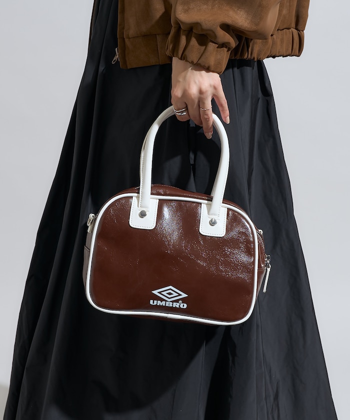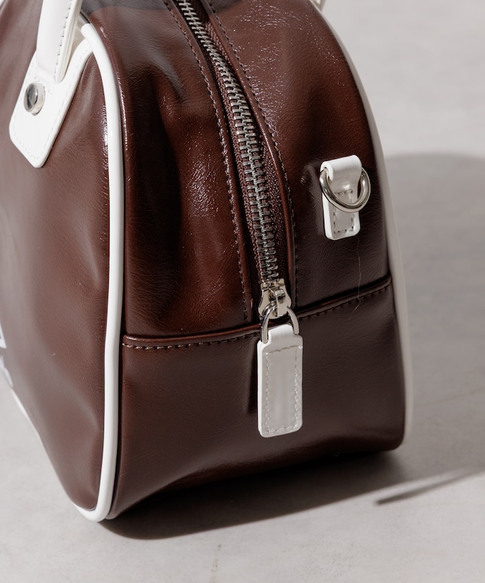 Y2K 무드가 가득한 보스턴 미니백. 광택감 있는 에나멜 가공의 배색 디자인이 스포티한 분위기를 더해줍니다