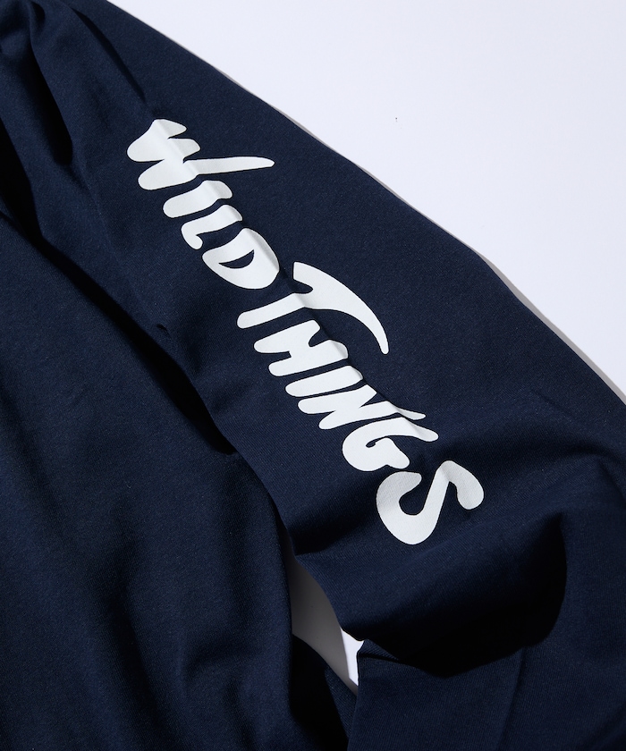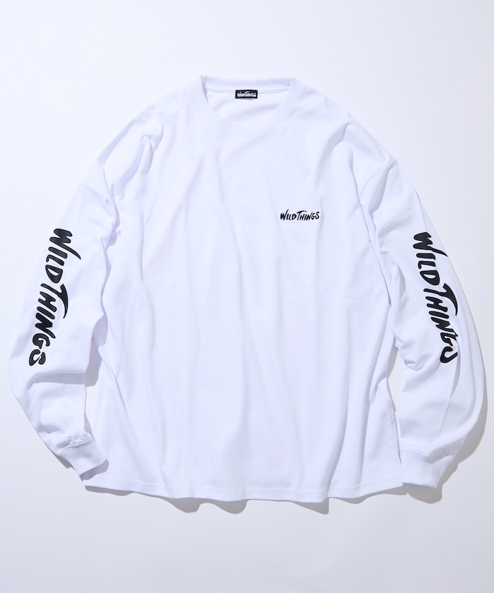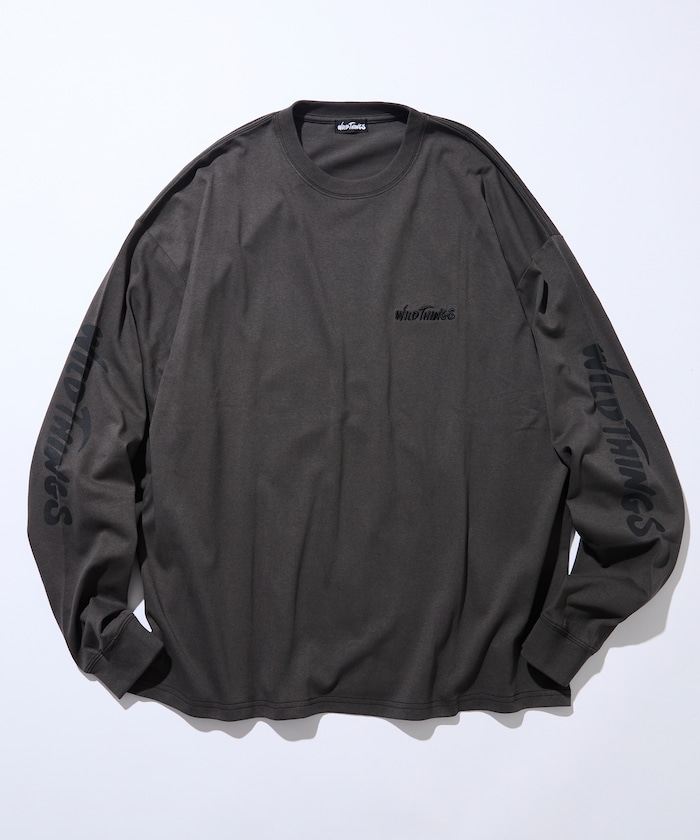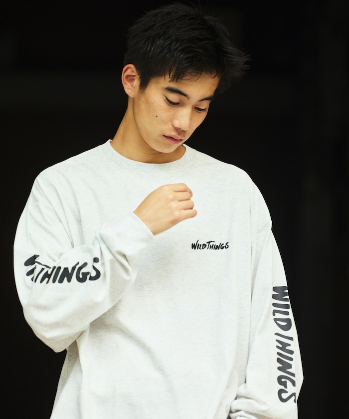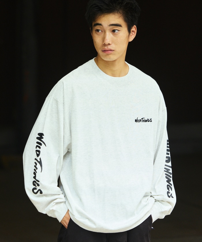 양쪽 소매와 가슴 부분에 브랜드의 시그니처 로고를 프린트가 있는 긴팔 티. 트렌드를 반영한 적당한 빅 실루엣입니다.