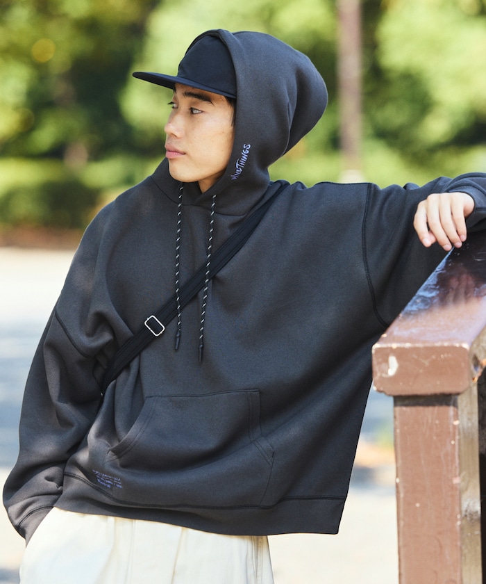 앞뒷면에 심플한 그래픽 프린트가 있는 후드 티 . 과하지 않은 여유로운 오버핏으로 다양한 스타일에 매치 가능합니다.