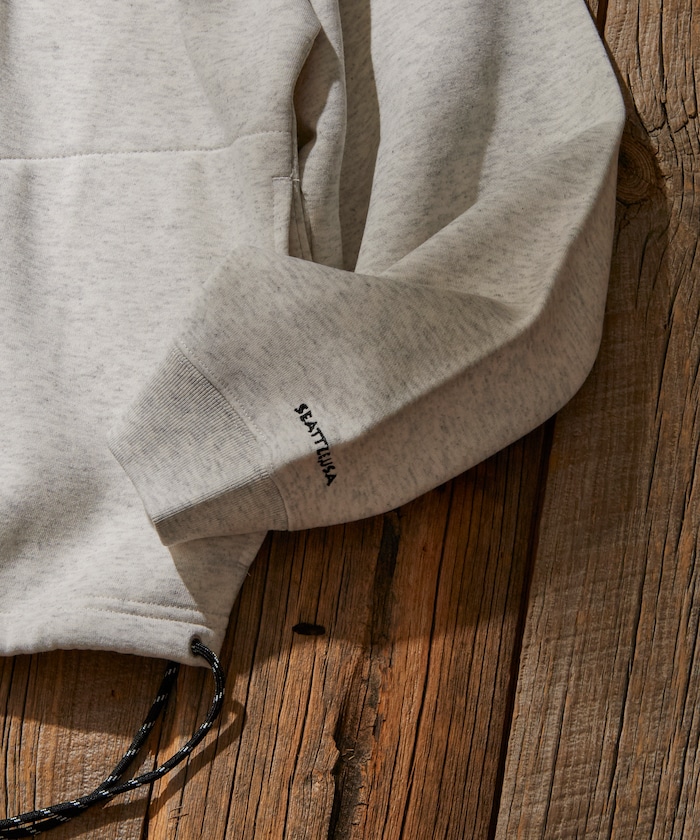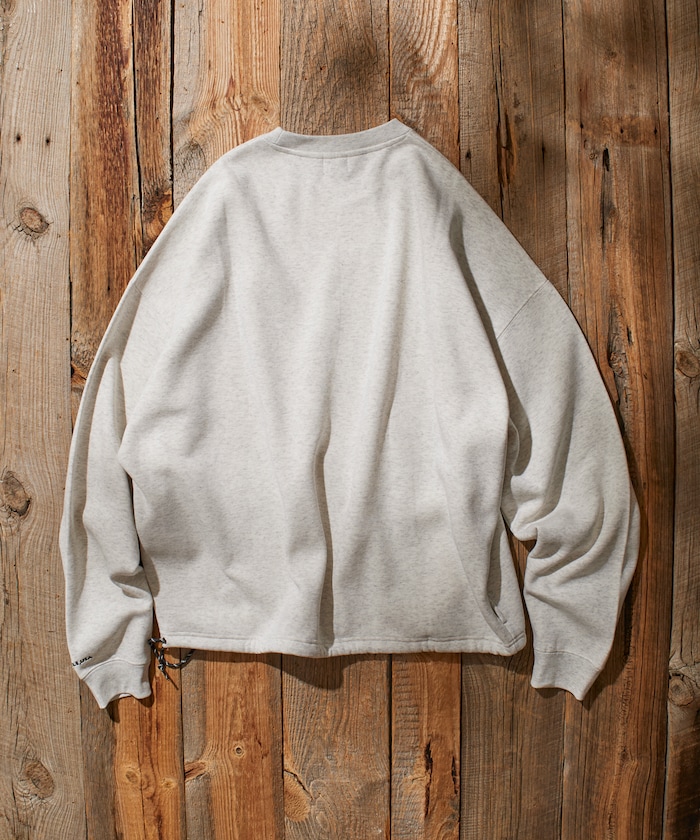 가슴에 원포인트 로고 자수가 있는 심플한 디자인의 스웨트 티. 밑단에 드로우코드가 있어 실루엣을 조절할 수 있습니다.