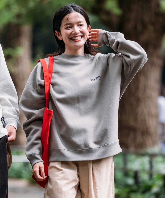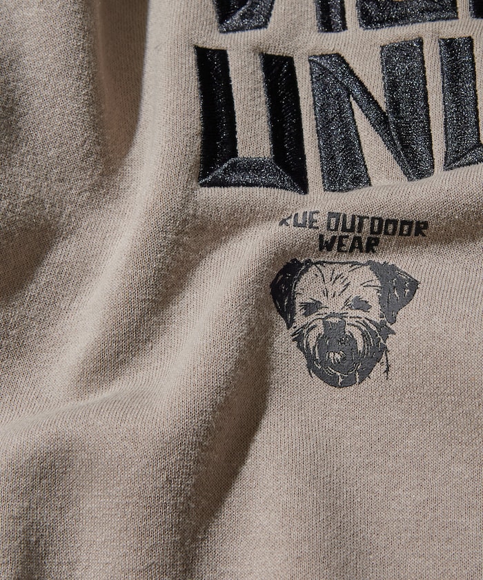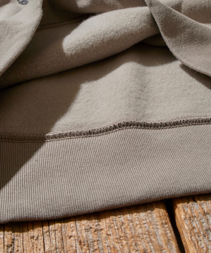 브랜드 네임의 유래가 된 문구를 백 자수 디자인 으로 표현한 스웨트 티. 앞면은 심플한 원포인트 로고가 있으며 부드럽고 포근한 기모 안감 소재를 사용합니다.