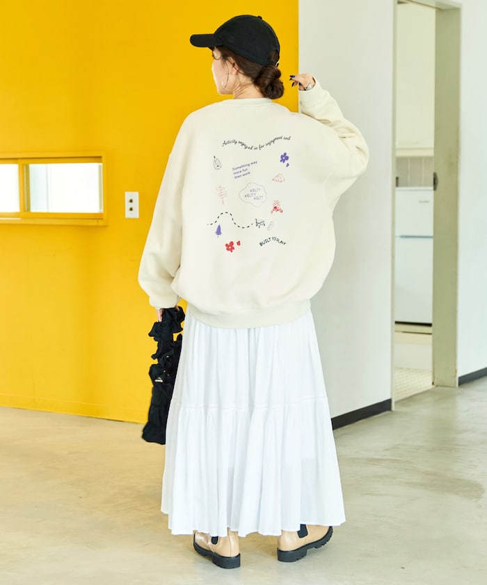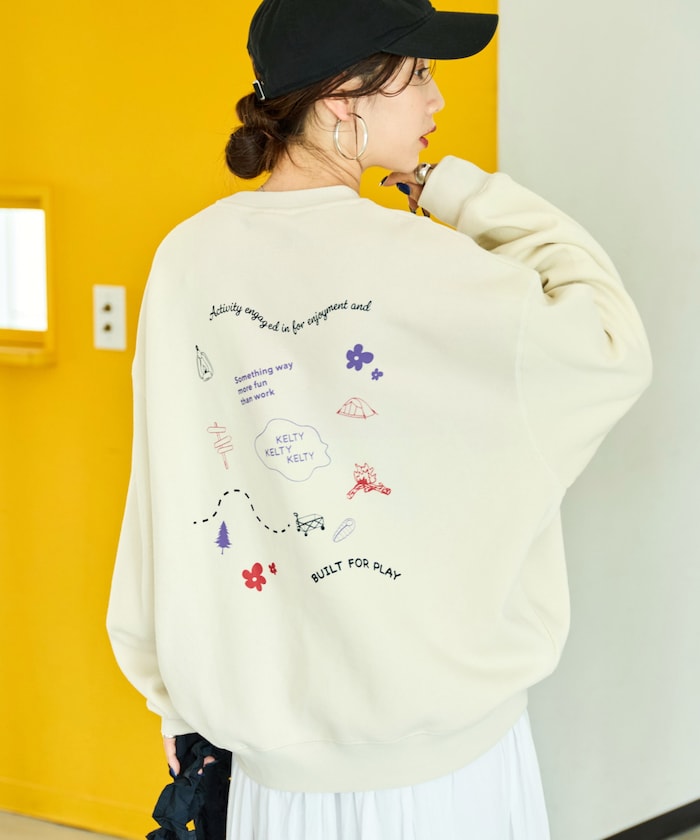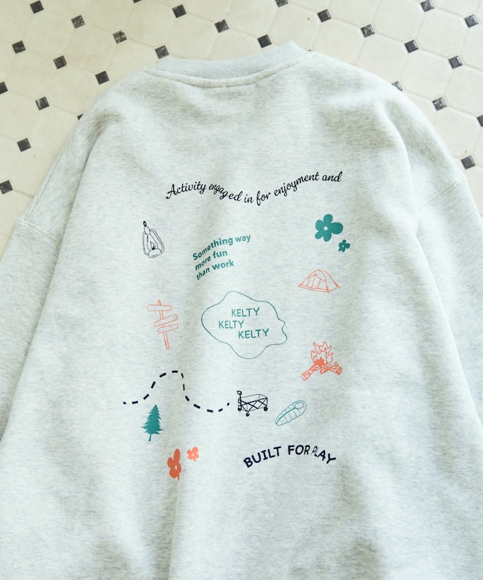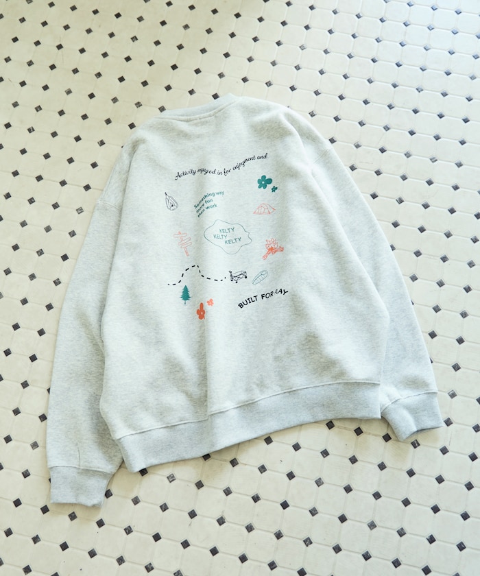 뒷면에 손그림 스타일 프린팅으로 귀여운 분위기의 스웨트 티. 앞면은 켈티의 심플한 삼각 로고가 있습니다. 여유로우누 빅 실루엣이며 기모 안감으로 쌀쌀한 계절에도 따뜻하게 입을 수 있습니다.