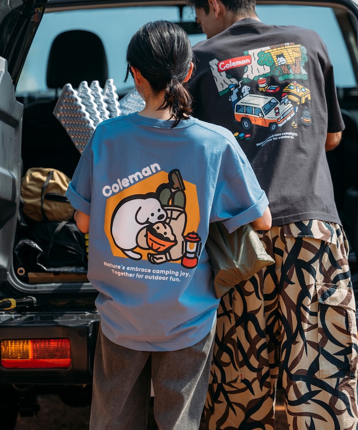 - 앞면에는 콜맨의 시그니처 랜턴과 matsui의 상징인 강아지 두 마리가 함께 표현된 심플한 그래픽
