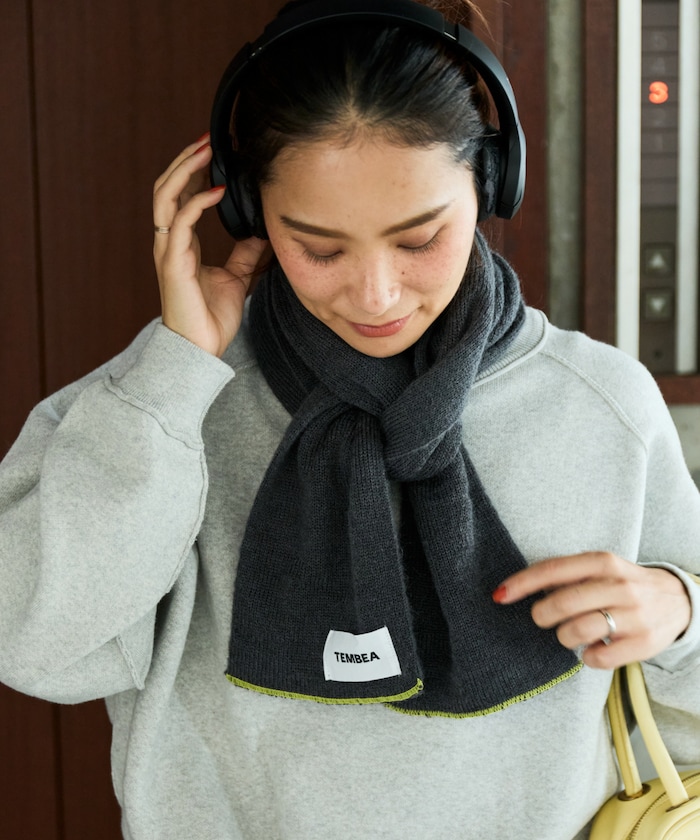 본체의 파이핑이 은은한 포인트가 되는 머플러. 모헤어 특유의 포근하고 보송한 질감이며 가볍지만 보온성이 우수합니다.