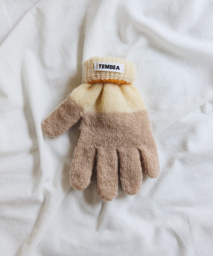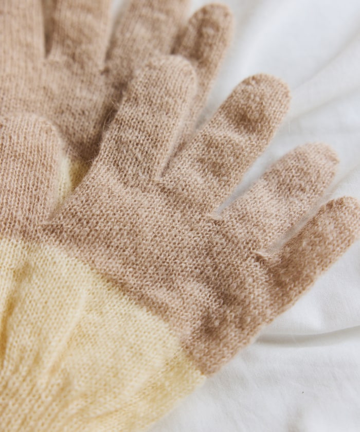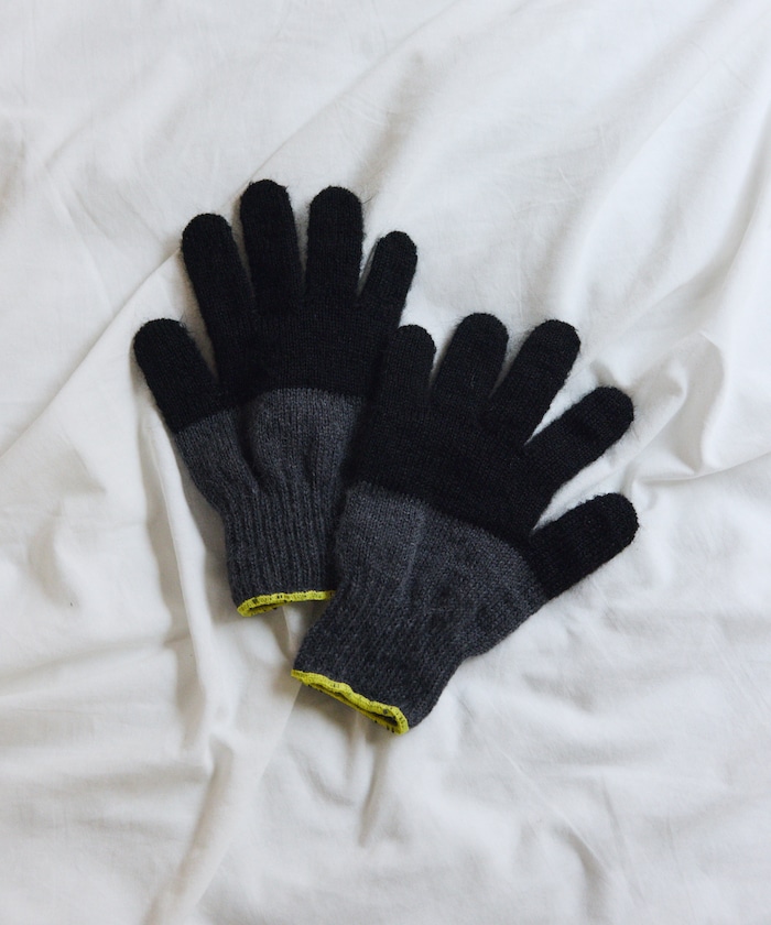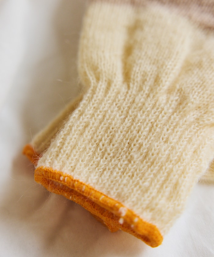 투톤 컬러 배색으로 대비감 있는 디자인의 손가락 장갑. 모헤어 특유의 포근한 질감과 가벼운 착용감이 특징입니다.