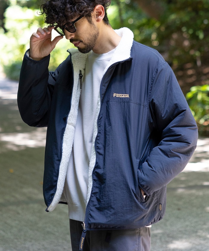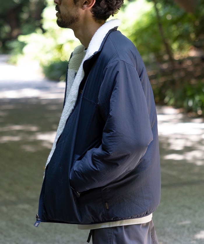 나일론과 보어 리버시블 디자인의 블루종. 여유 있는 릴렉스핏 실루엣입니다. 가볍기만 보온성이 뛰어나 가을 겨울 입기 좋습니다.