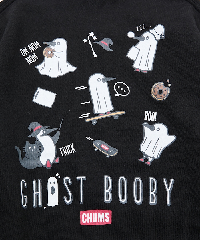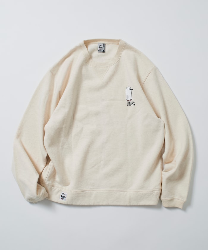 랜덤 부비버드 패턴을 귀여운 오바케 모티프로 재해석한 개성 있는 프린팅의 스웨트 티 .