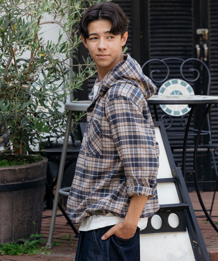 플란넬 체크 후드 셔츠