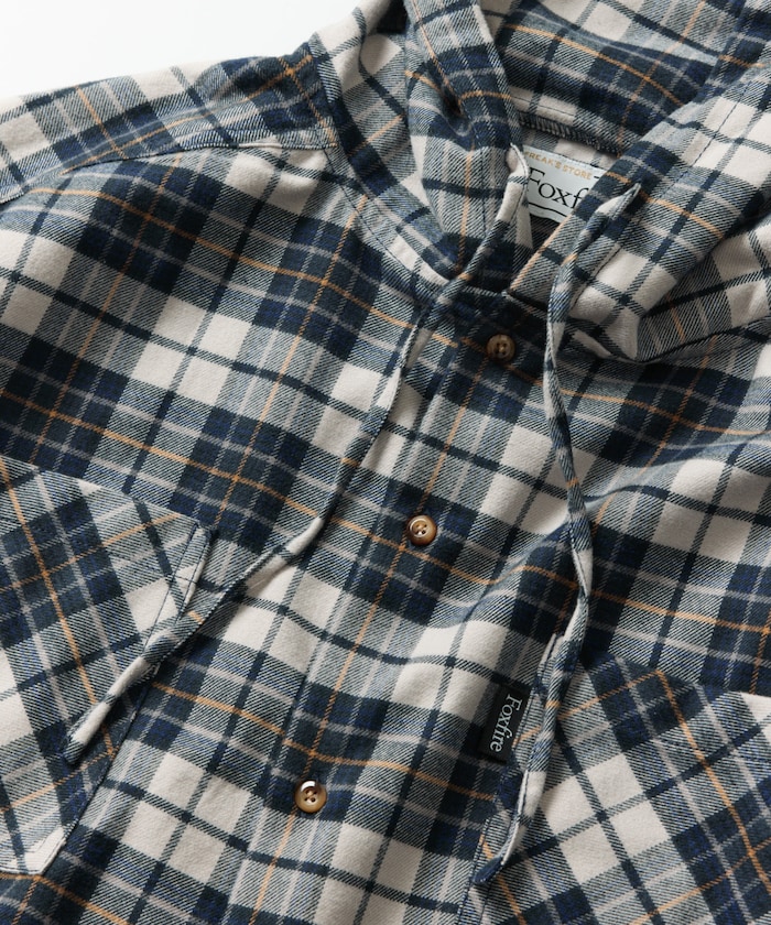 전통적인 피싱 셔츠에 후드를 더해, 셔츠와 파카의 장점을 모두 갖춘 개성 있는 스타일의 셔츠. 따뜻하고 부드러운 플란넬 소재를 사용했습니다. 밑단 드로우코드로 실루엣을 조절할 수 있습니다.