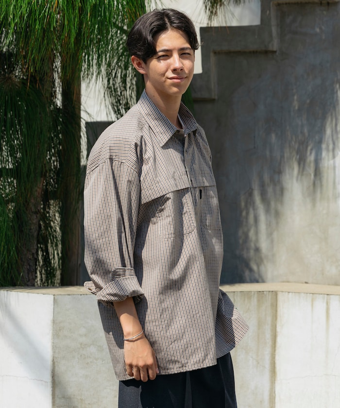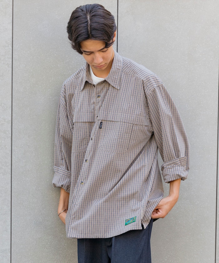 아이코닉한 피싱 포켓 디테일의 체크 셔츠. 여유 있는 핏으로 셔츠 자켓처럼 입을 수 있습니다.