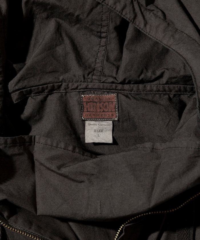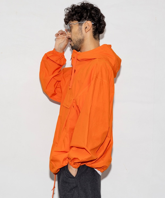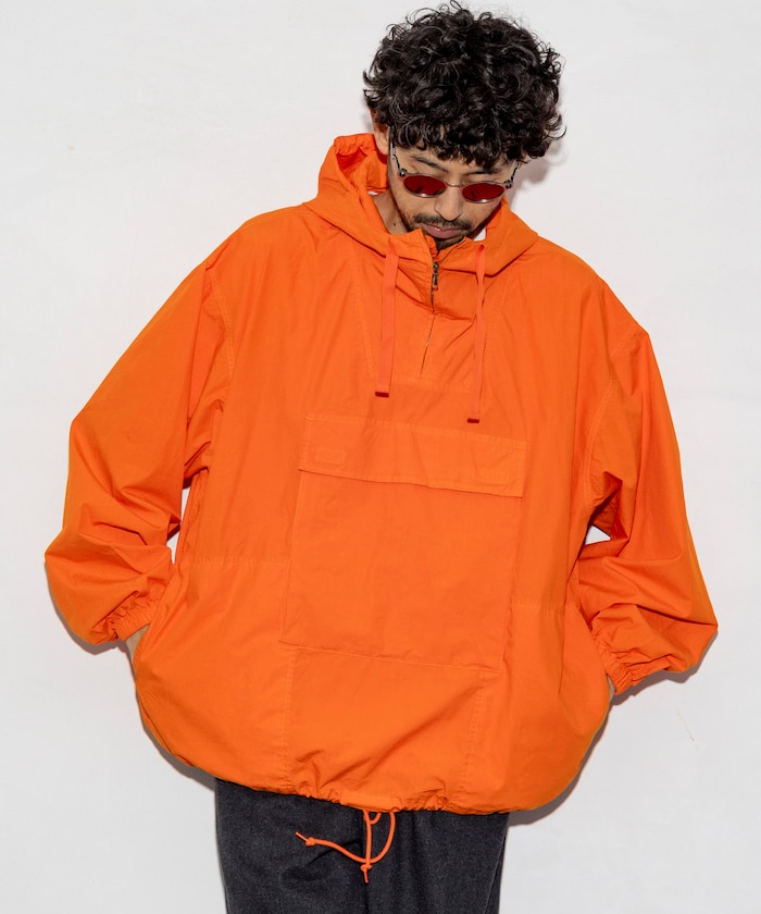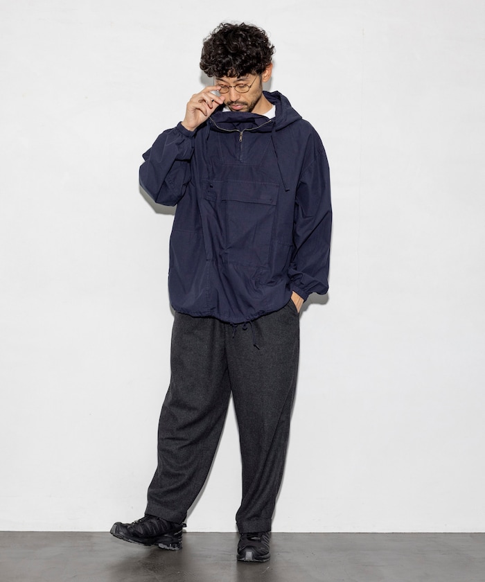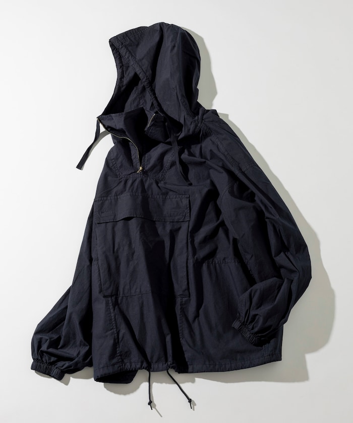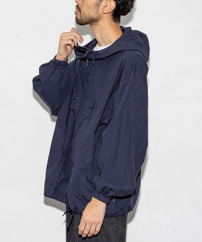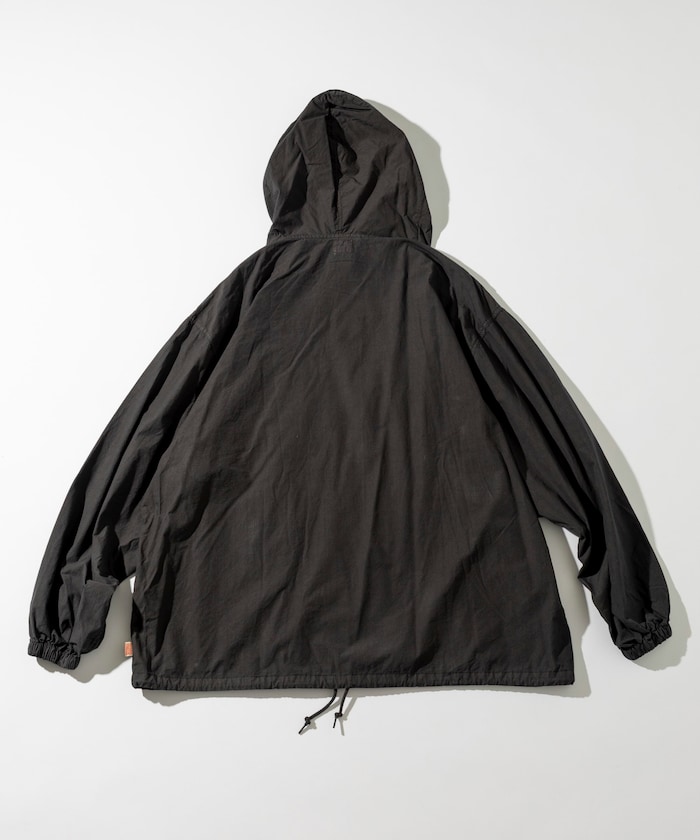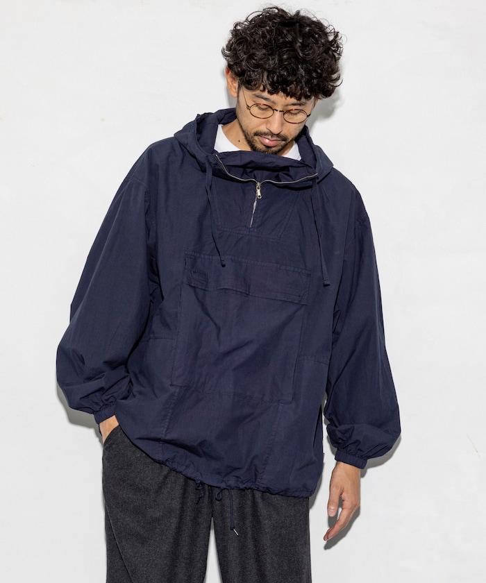 피그먼트 염색으로 가공된 빈티지 분위기의 아노락 파카. 영국군 스모크 파카를 모티브로, 하프집업 디테일이 특징입니다.