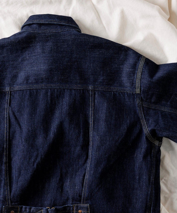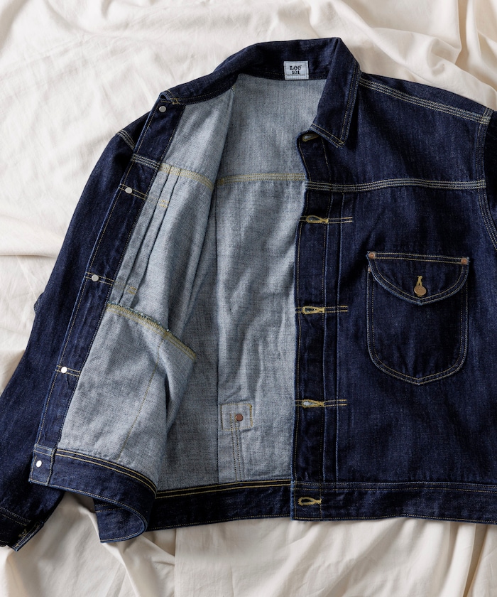 12.7온스 오리지널 데님을 사용한 재킷. 버튼과 네임에 「101」 탄생 100주년을 기념하는 한정 파츠를 사용했습니다.