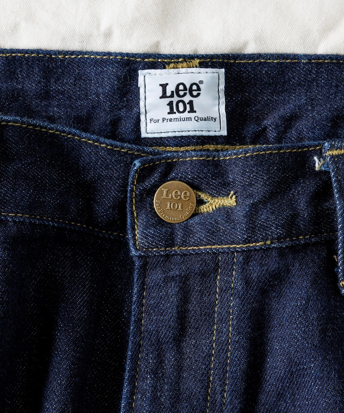 스티치 컬러를 옐로우 베이지로 변경했으며 버튼과 네임에 Lee “101” 100주년 한정 파츠 사용했습니다.