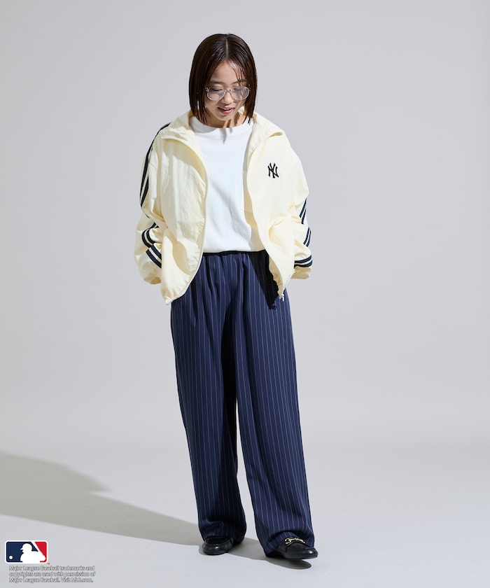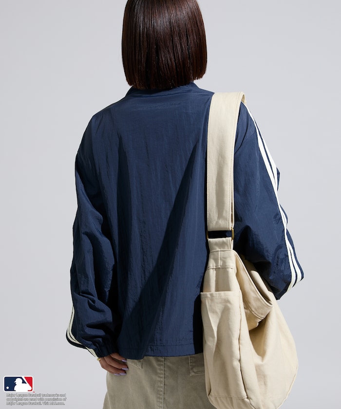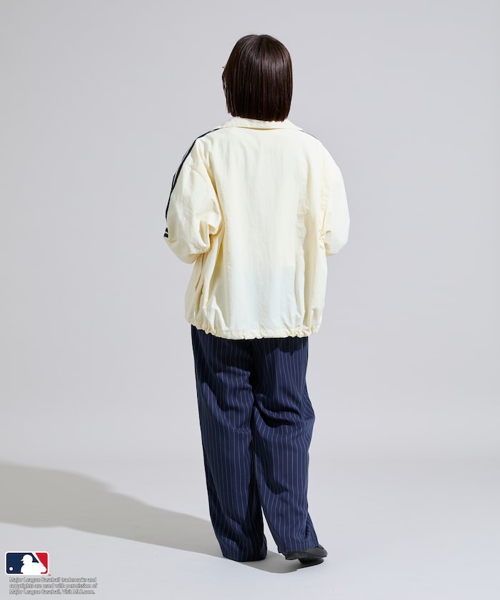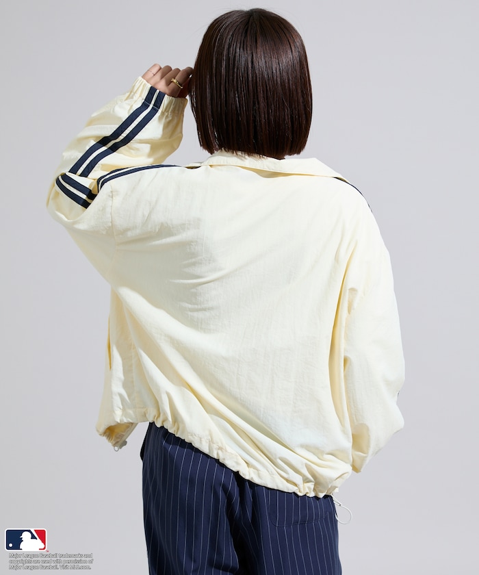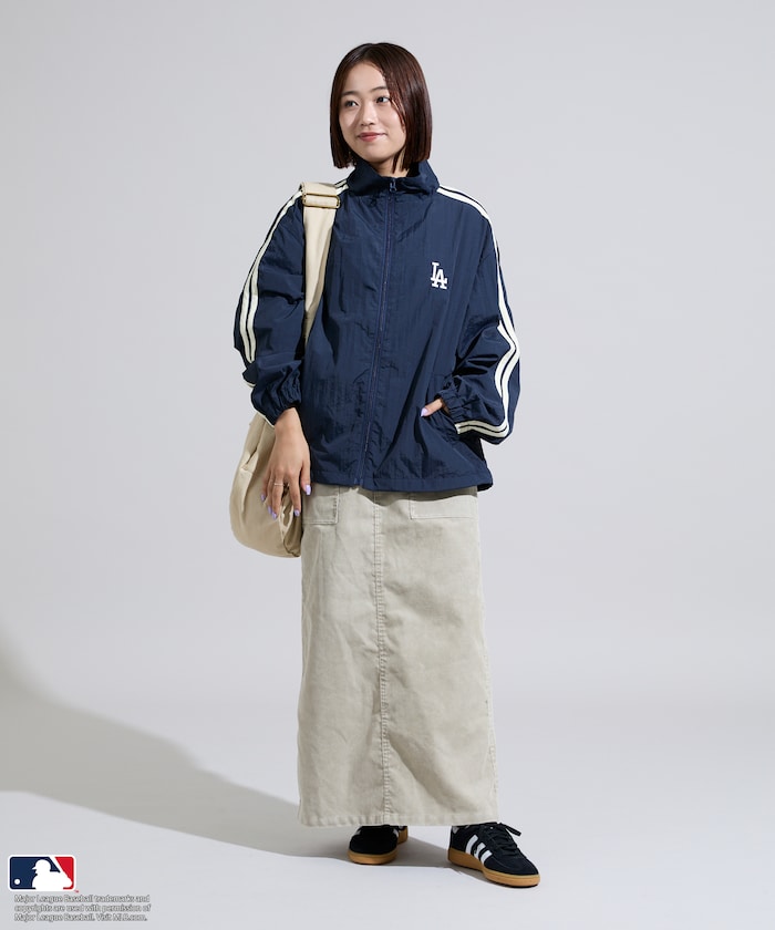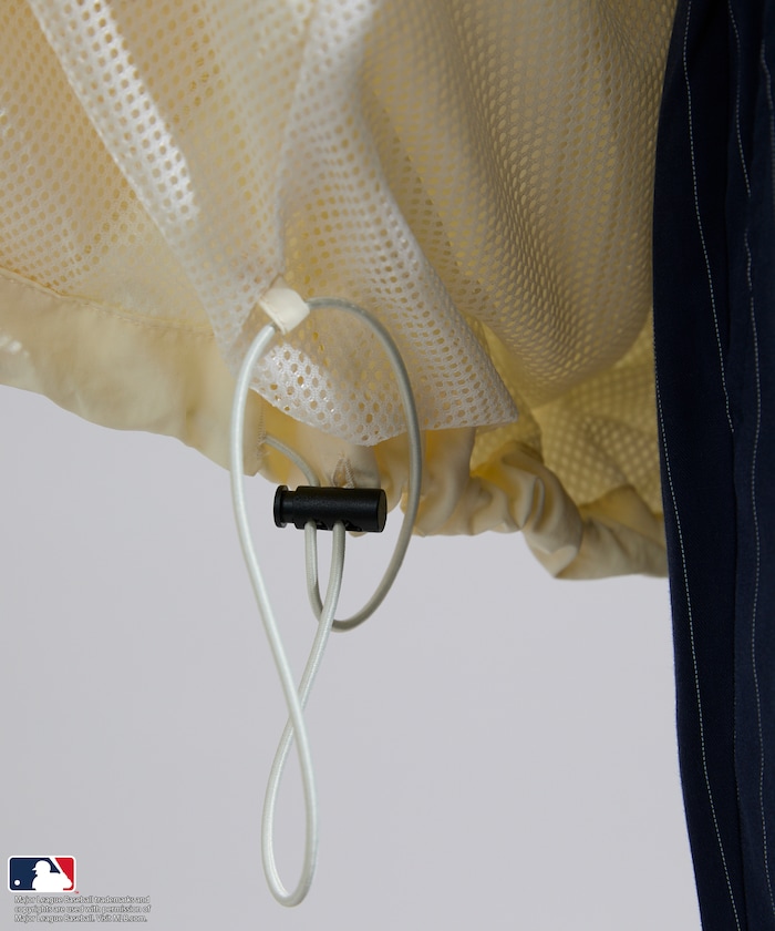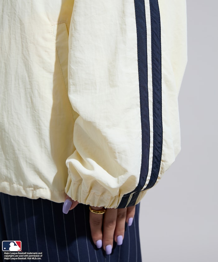 MLB 로고와 라인으로 캐주얼한 분위기의 나일론 블루종. 봄에 입기 좋은 경쾌한 느낌입니다. 밑단 드로스트링으로 실루엣 조절이 가능합니다. 오버사이즈 실루엣