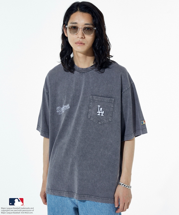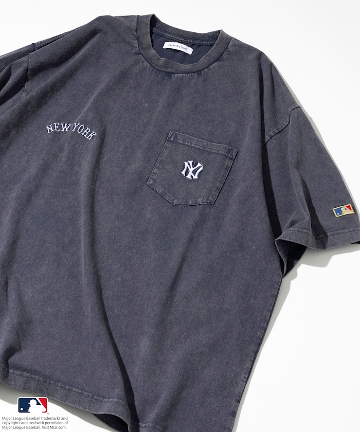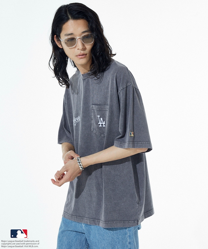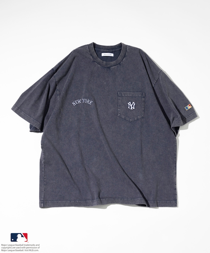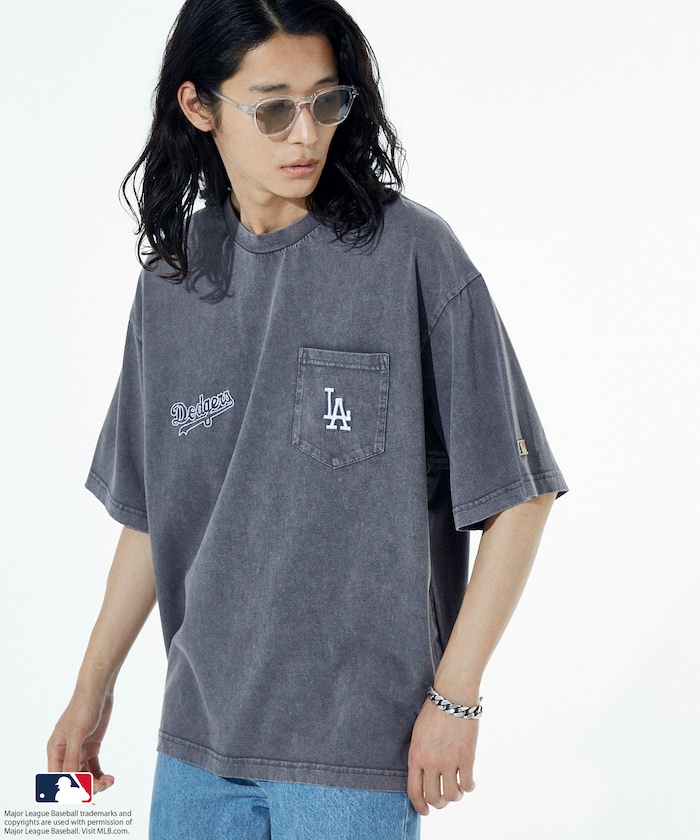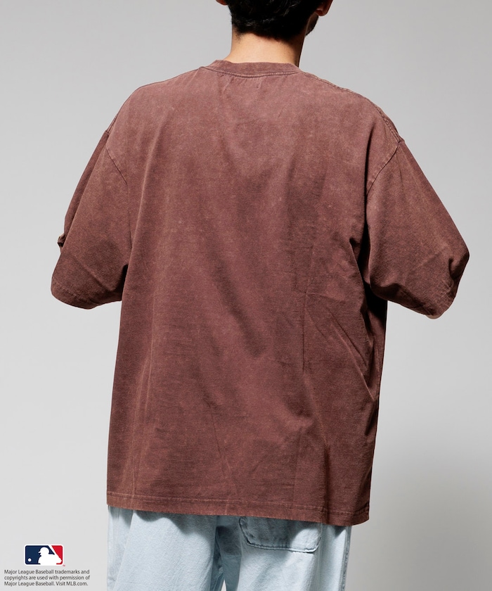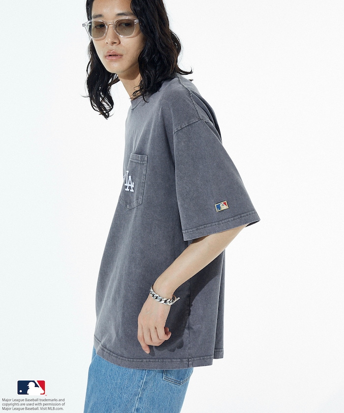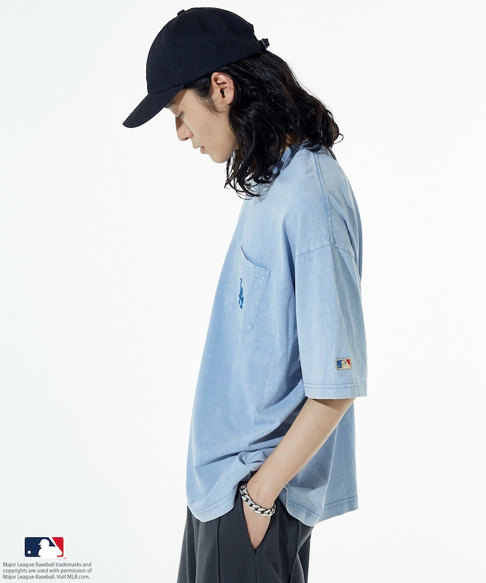 MLB 로고가 빛나는 페이드 워싱 반팔 티셔츠