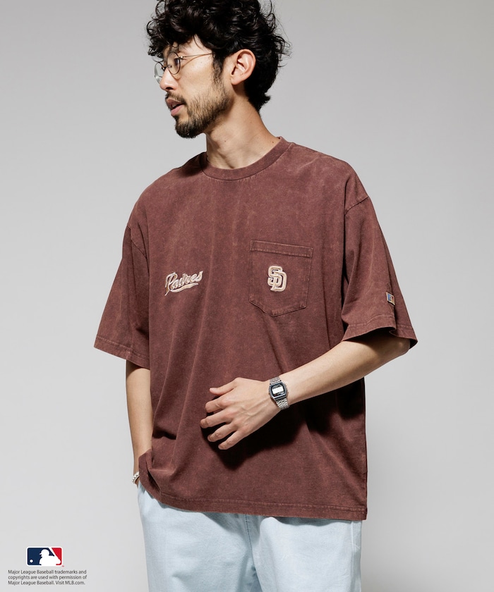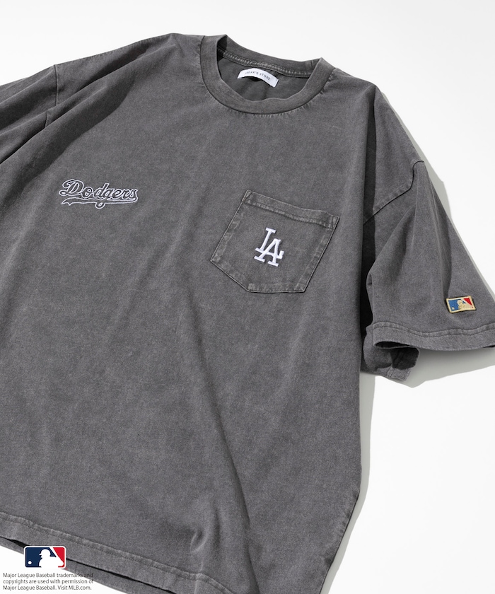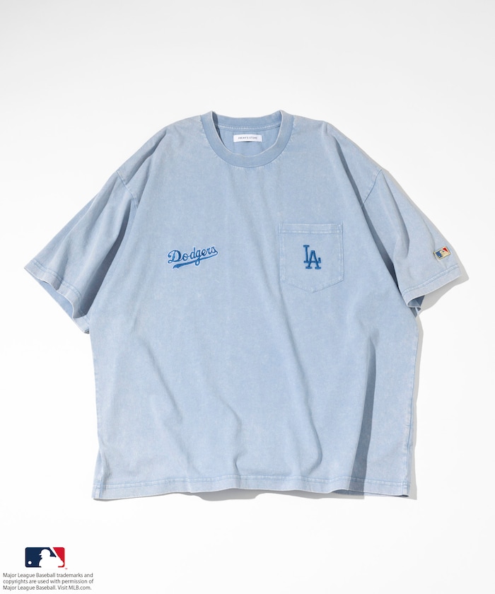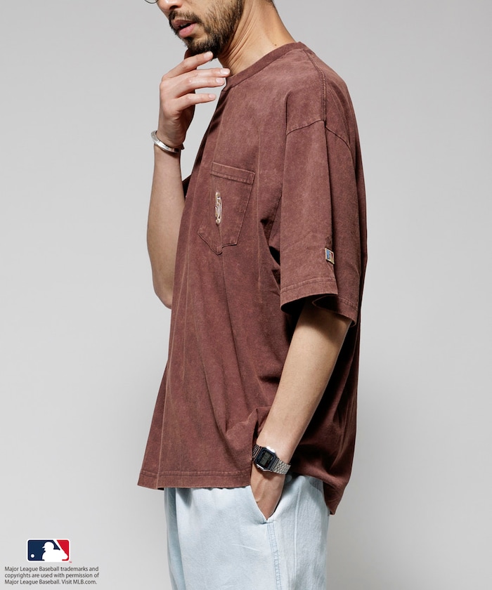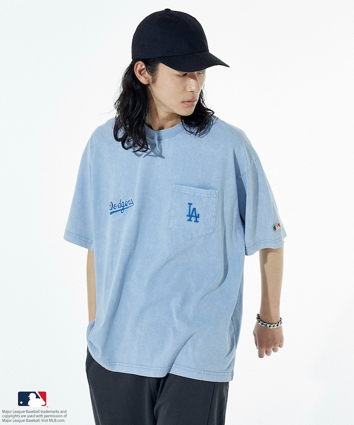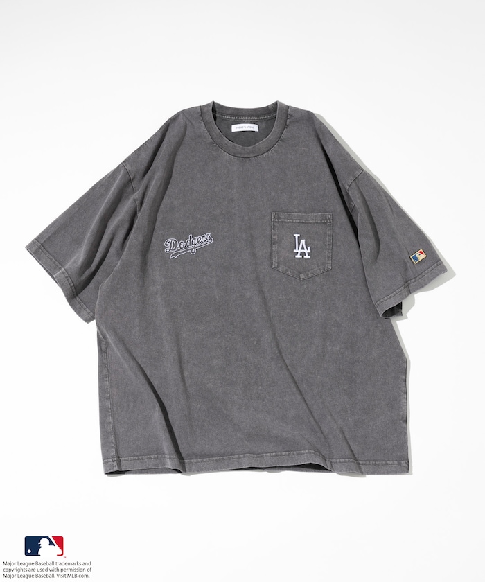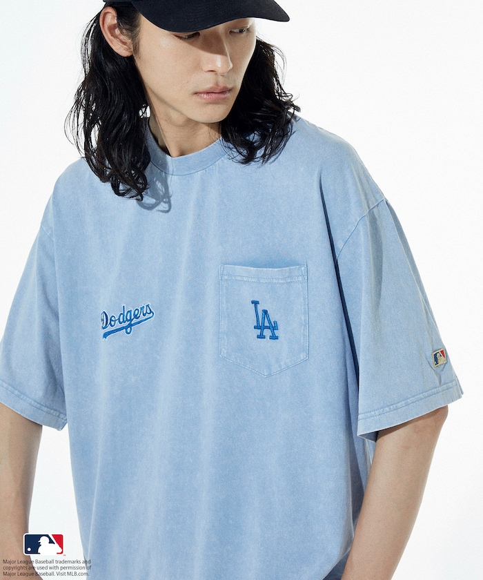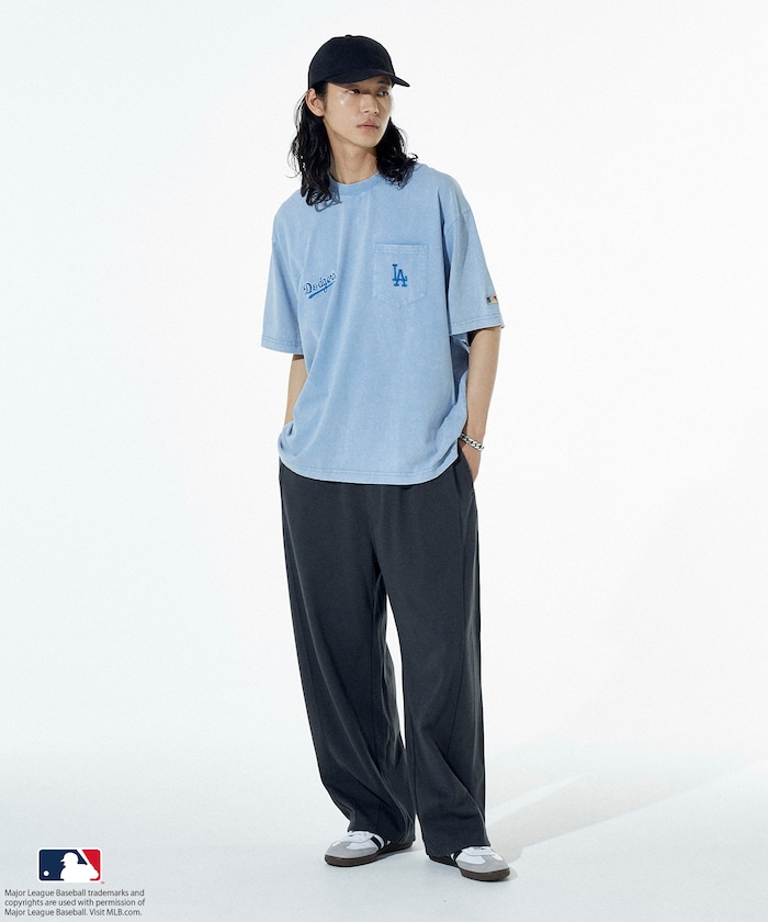 MLB 로고가 빛나는 페이드 워싱 반팔 티셔츠