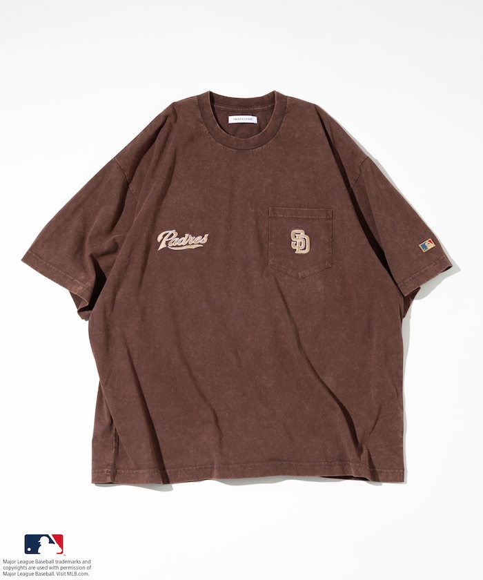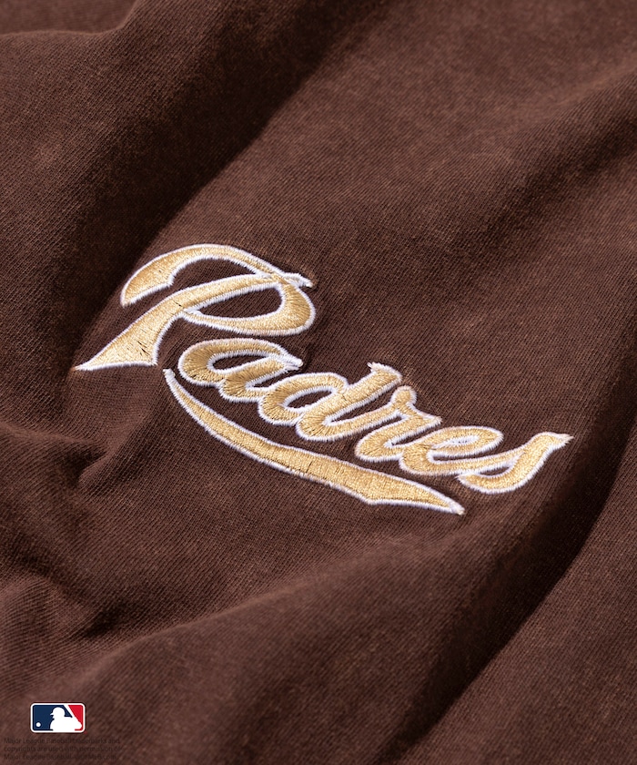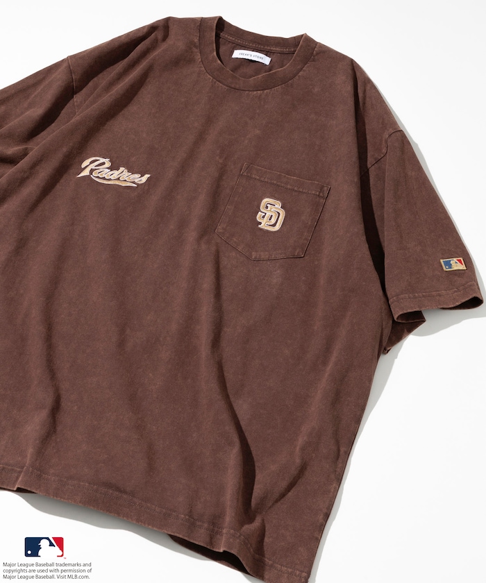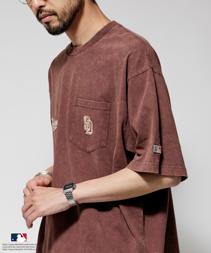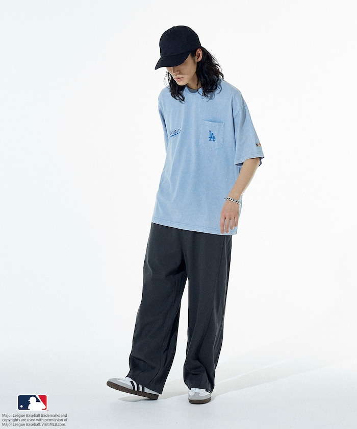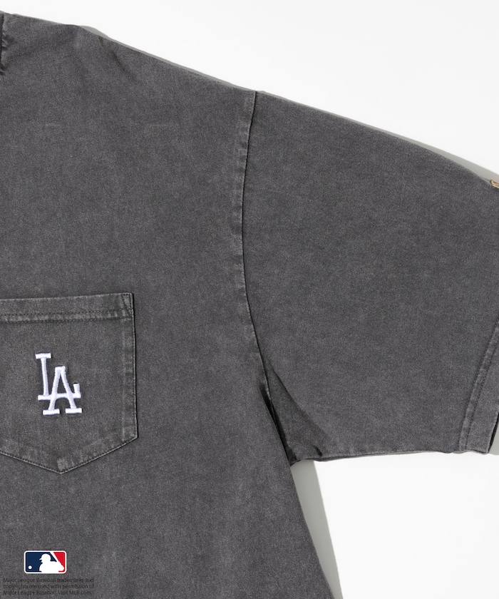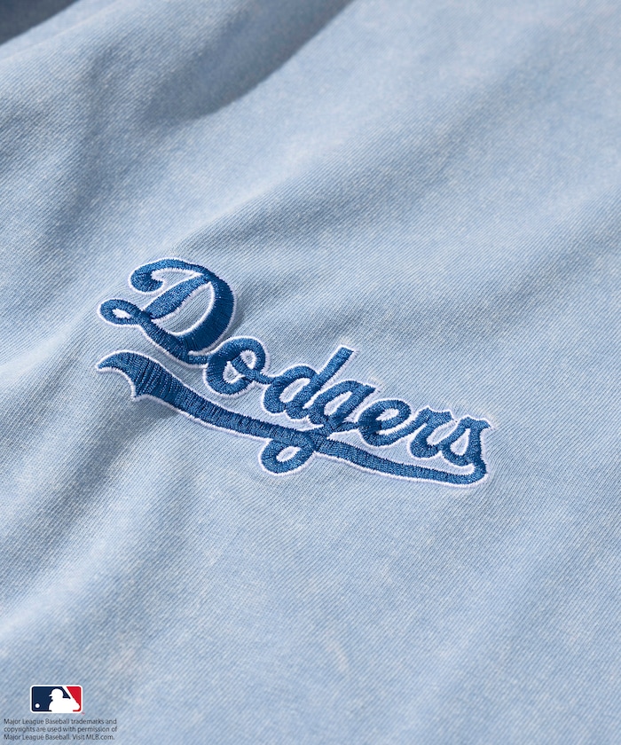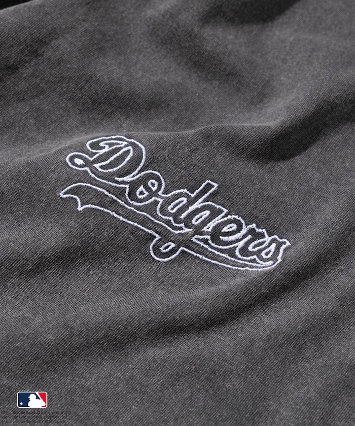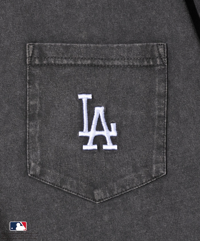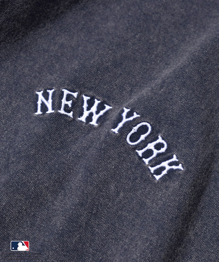 양쪽 가슴에 들어간 MLB 로고의 자수와 프린트가 있습니다. 전체적으로 빈티지한 분위기를 살린 페이드 워싱 가공 처리를 했습니다.