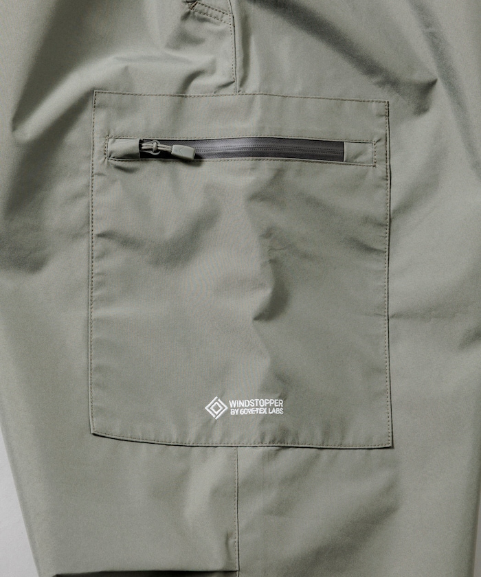 환경을 고려한 WINDSTOPPER BY GORE-TEX LABS 소재를 사용한 팬츠. 디자인은 클라이밍 팬츠를 기반으로, 방수 지퍼가 적용된 카고 포켓과 무릎 부분의 턱 디테일이 있습니다. 허리는 웨빙 벨트로 핏 조절이 가능하며 밑단 스핀들로 실루엣을 조절할 수 있습니다. 적당한 여유감의 스트레이트 실루엣으로 편안하게 착용 가능합니다.