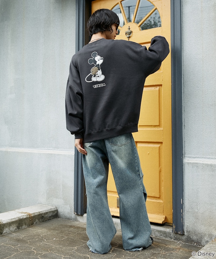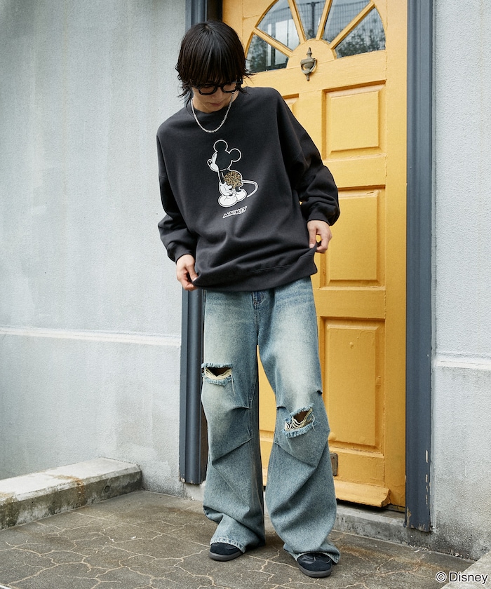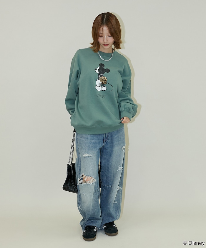 전면에는 미키 마우스 그래픽이 프린트되어 있으며, 표범 무늬 팬츠가 포인트가 되어 유쾌한 분위기를 더했습니다. 포근하고 부드러운 기모 안감 소재를 사용하며 품이 넉넉한 오버사이즈 실루엣입니다.
