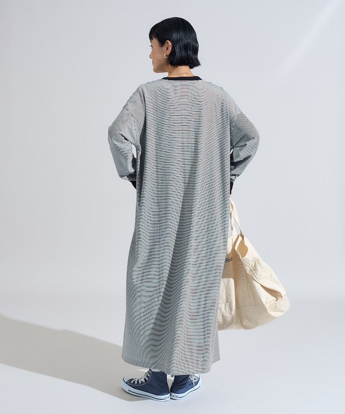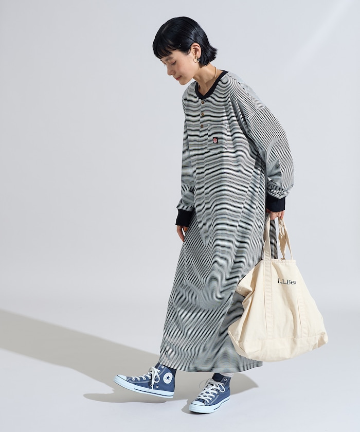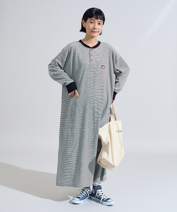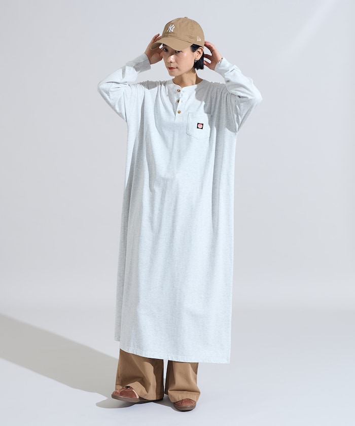 헨리넥 디자인으로 자연스러운 티셔츠형 원피스.
