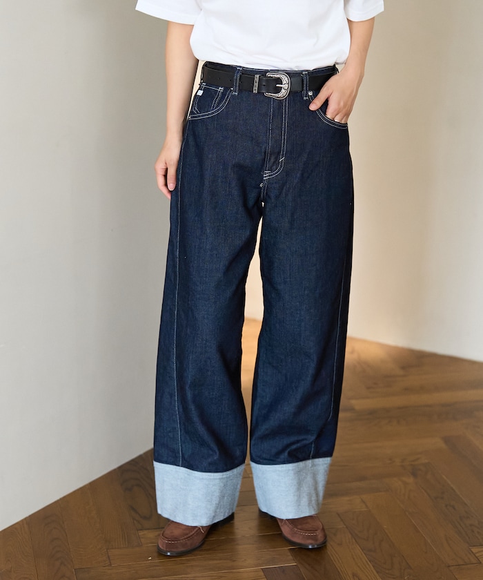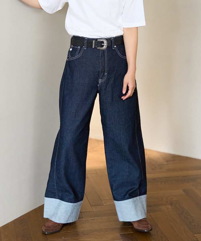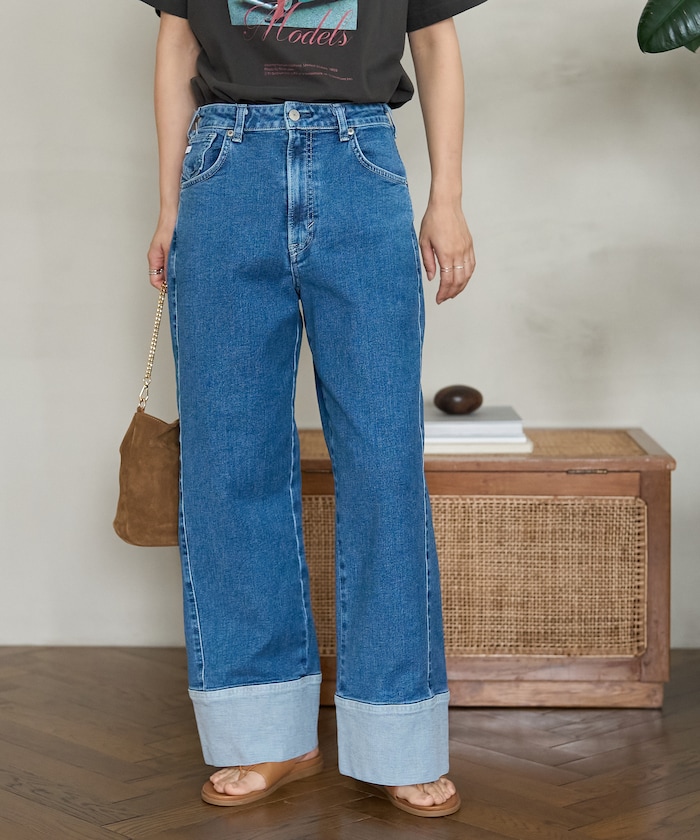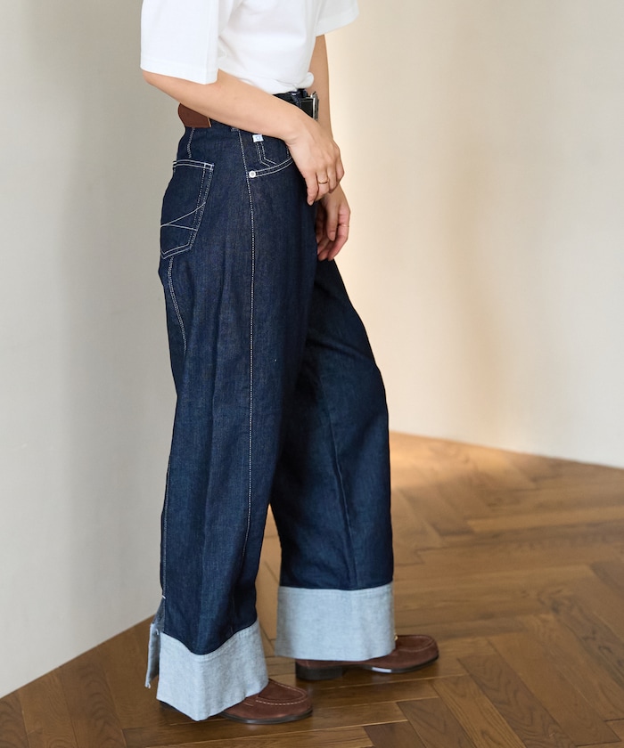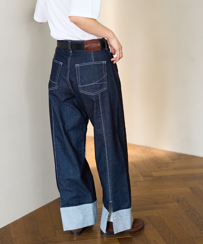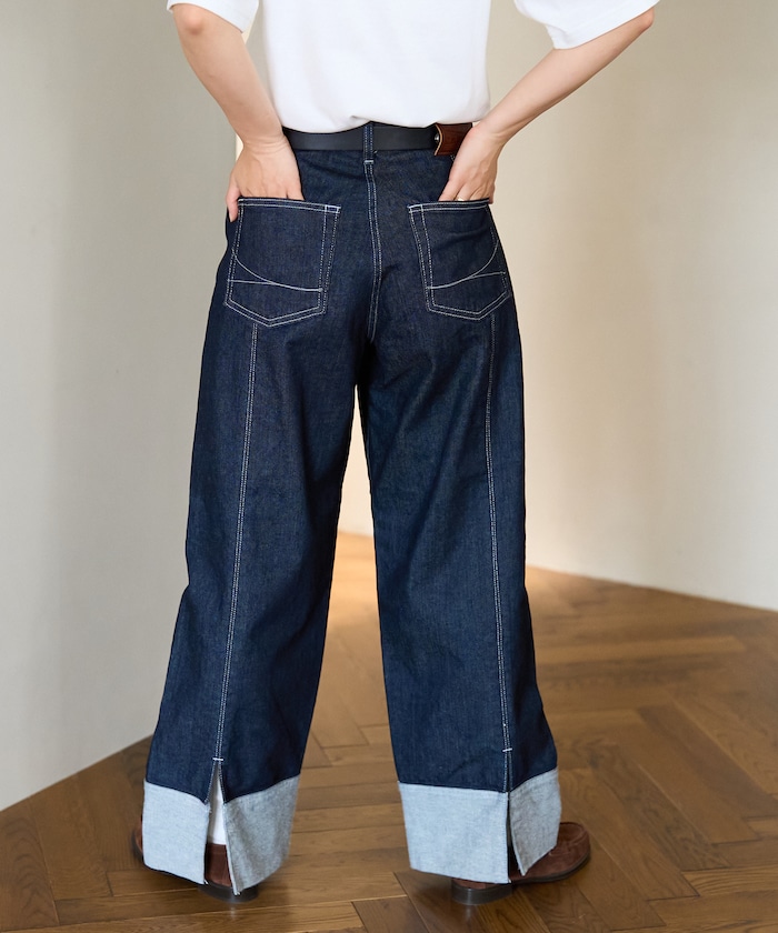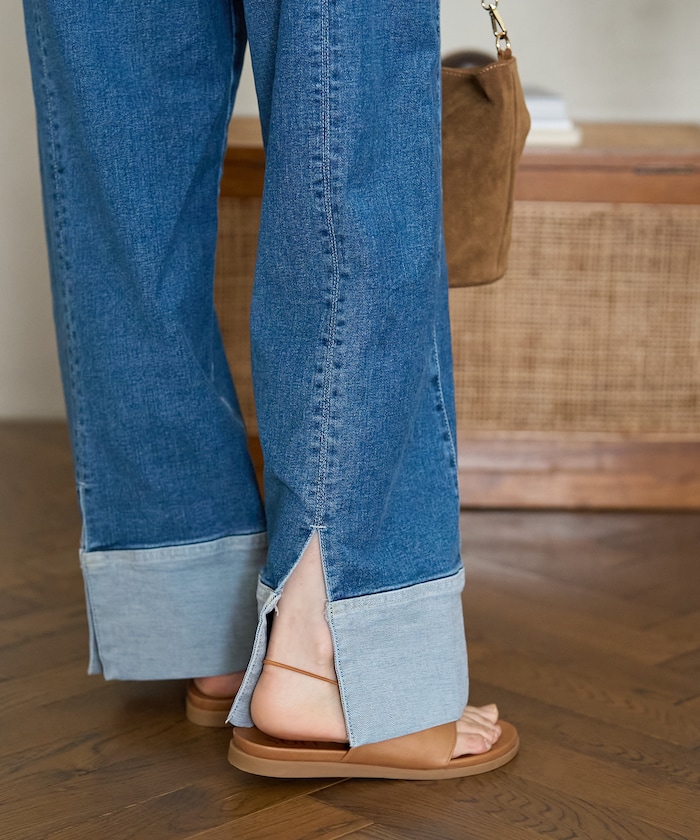 밑단에 슬릿이 있는 와이드 스트레이트 팬츠