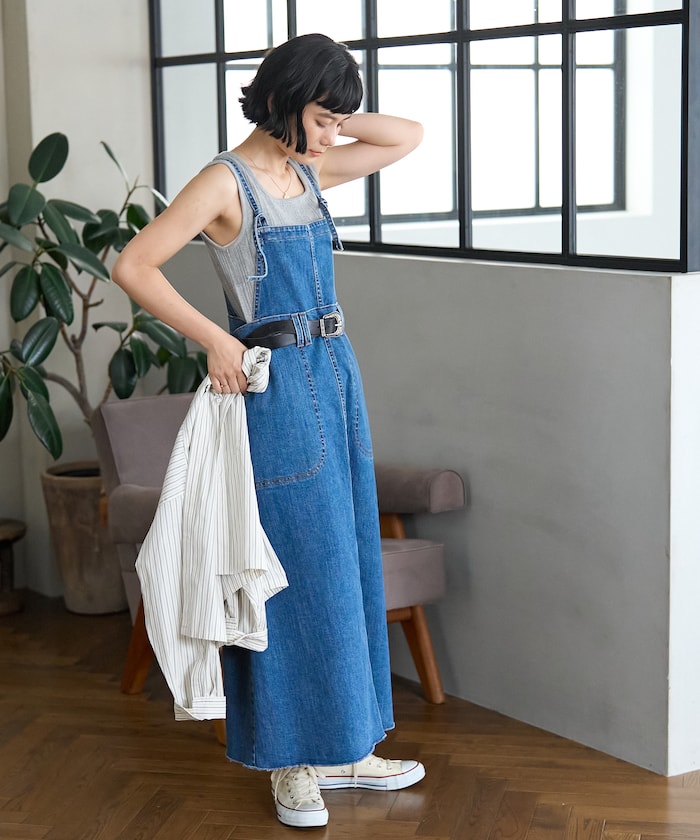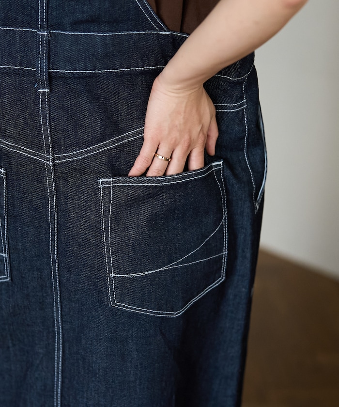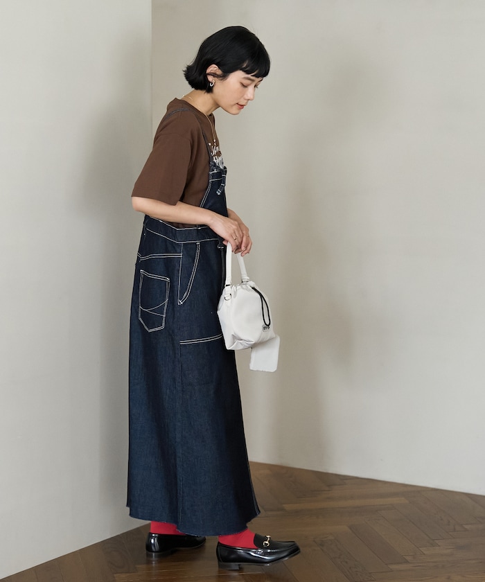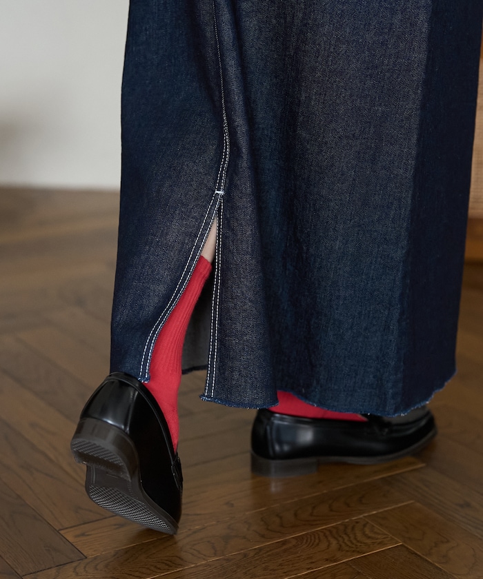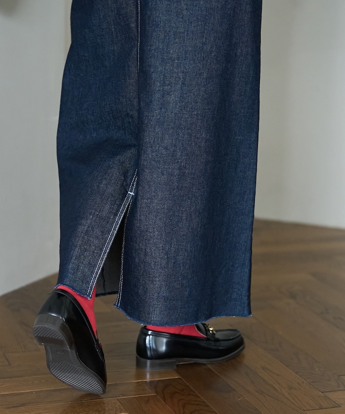 사이드에 지퍼가 있으며 밑단으로 갈수록 자연스럽게 퍼지는 A라인 실루엣입니다.