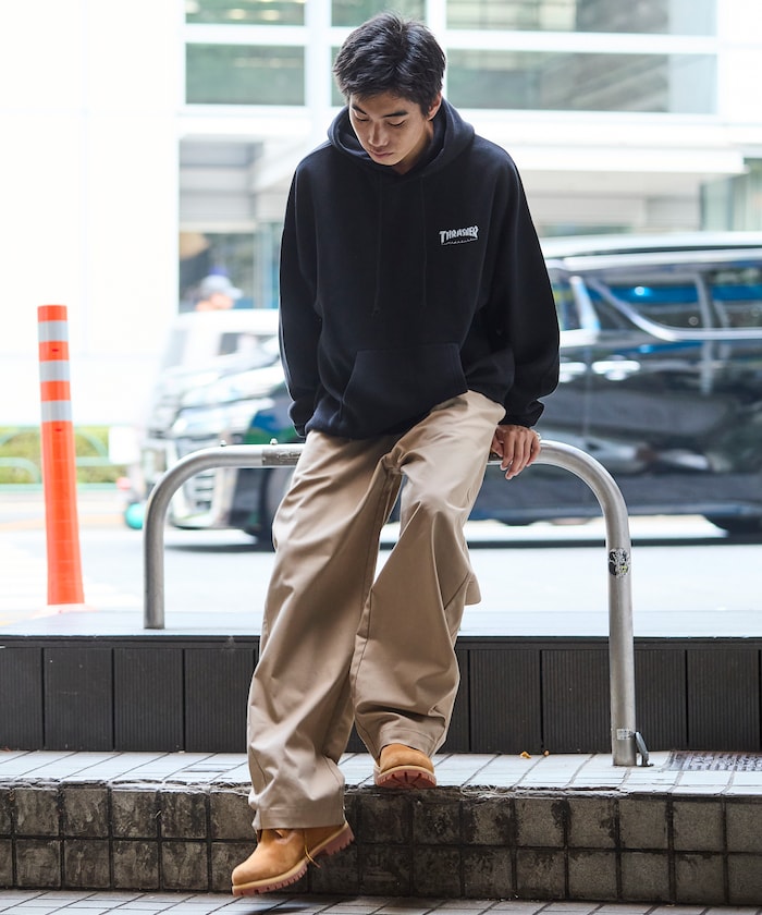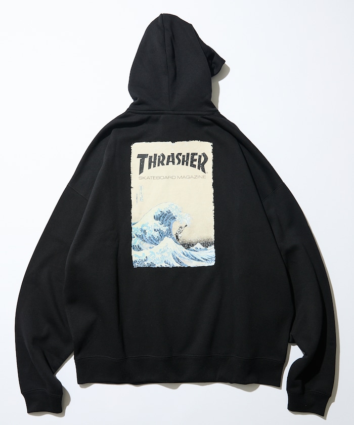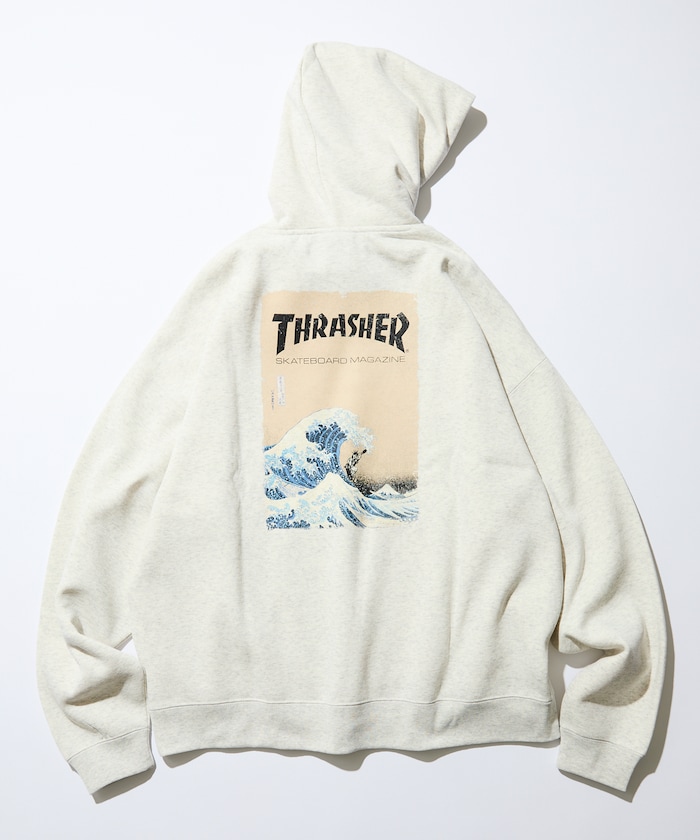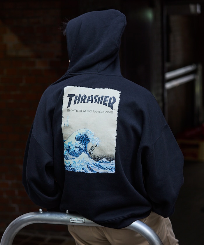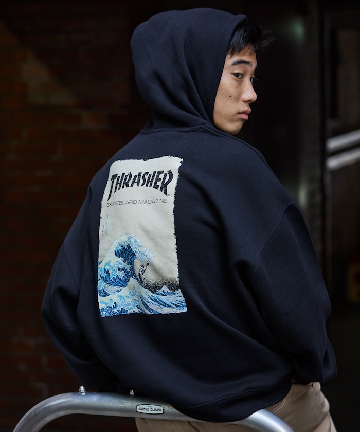 등 부분에는 우키요에 디자인과 브랜드 상징인 MAG 로고를 재해석한 대형 그래픽 프린트가 있는 스웨트 티 . 자연스러운 에이징을 연출한 바랜 듯한 크랙 프린트가 특징입니다. 트렌드를 반영하면서도 코디하기 쉬운 적당한 빅 실루엣입니다.