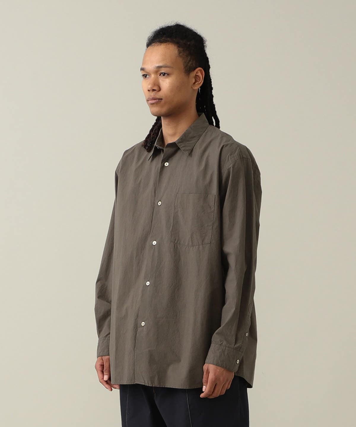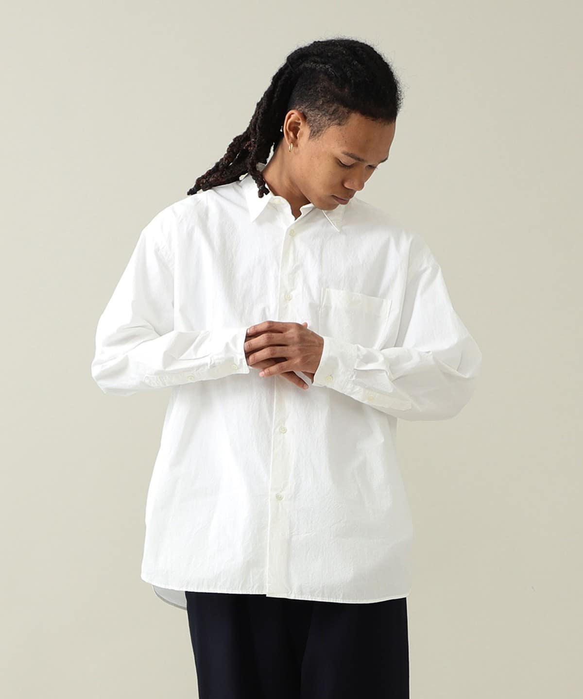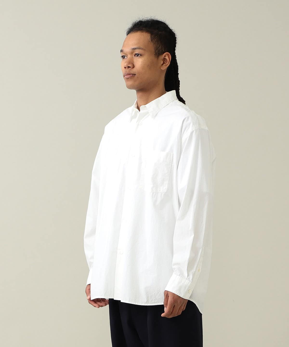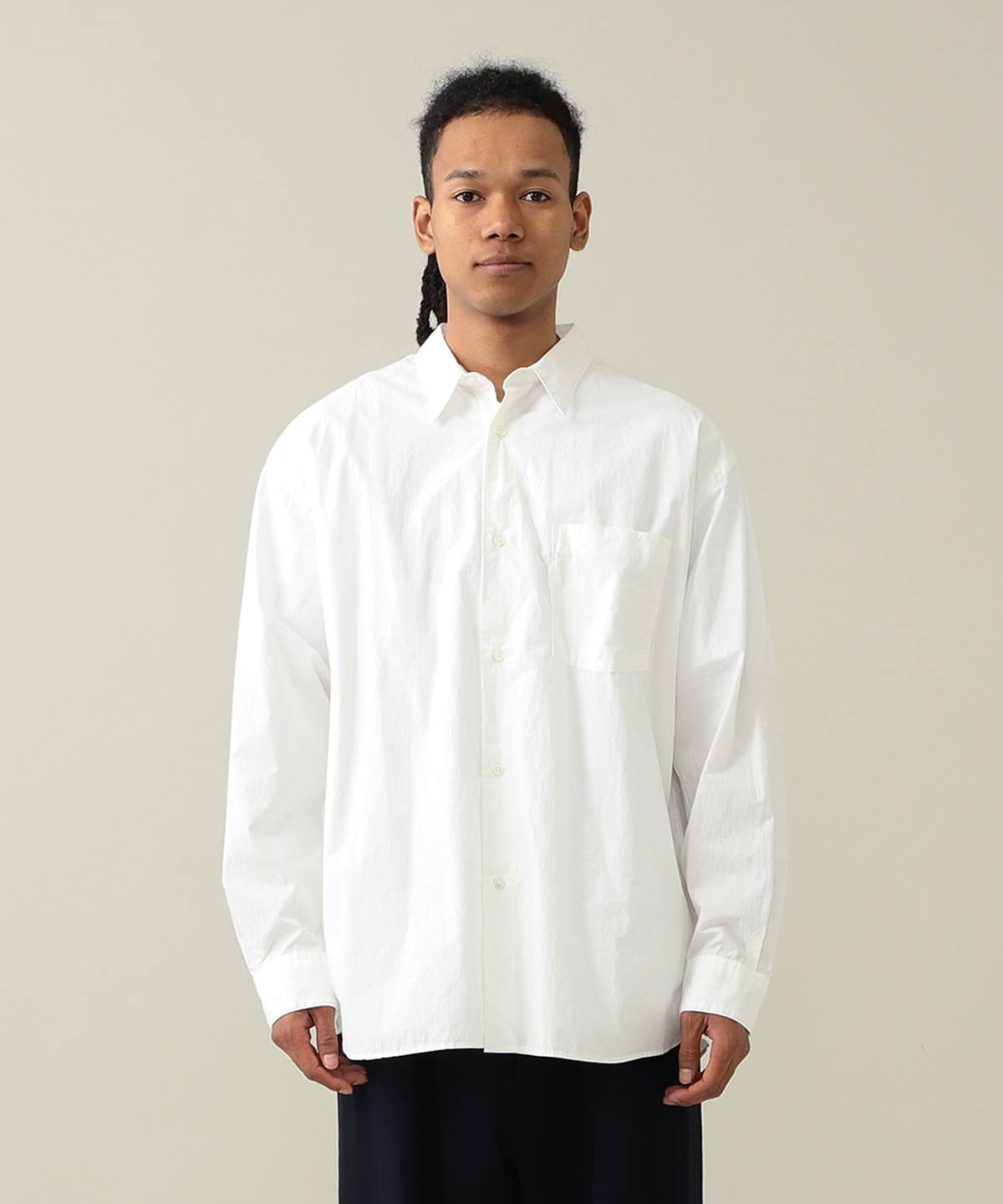 드레스 셔츠에 필적하는 정교한 봉제로 완성된 단정한 인상의 레귤러 칼라 셔츠입니다. 리락스 핏으로 여유로운 실루엣입니다.