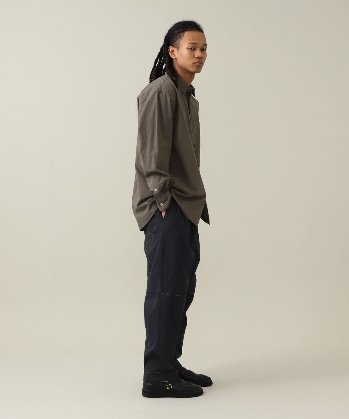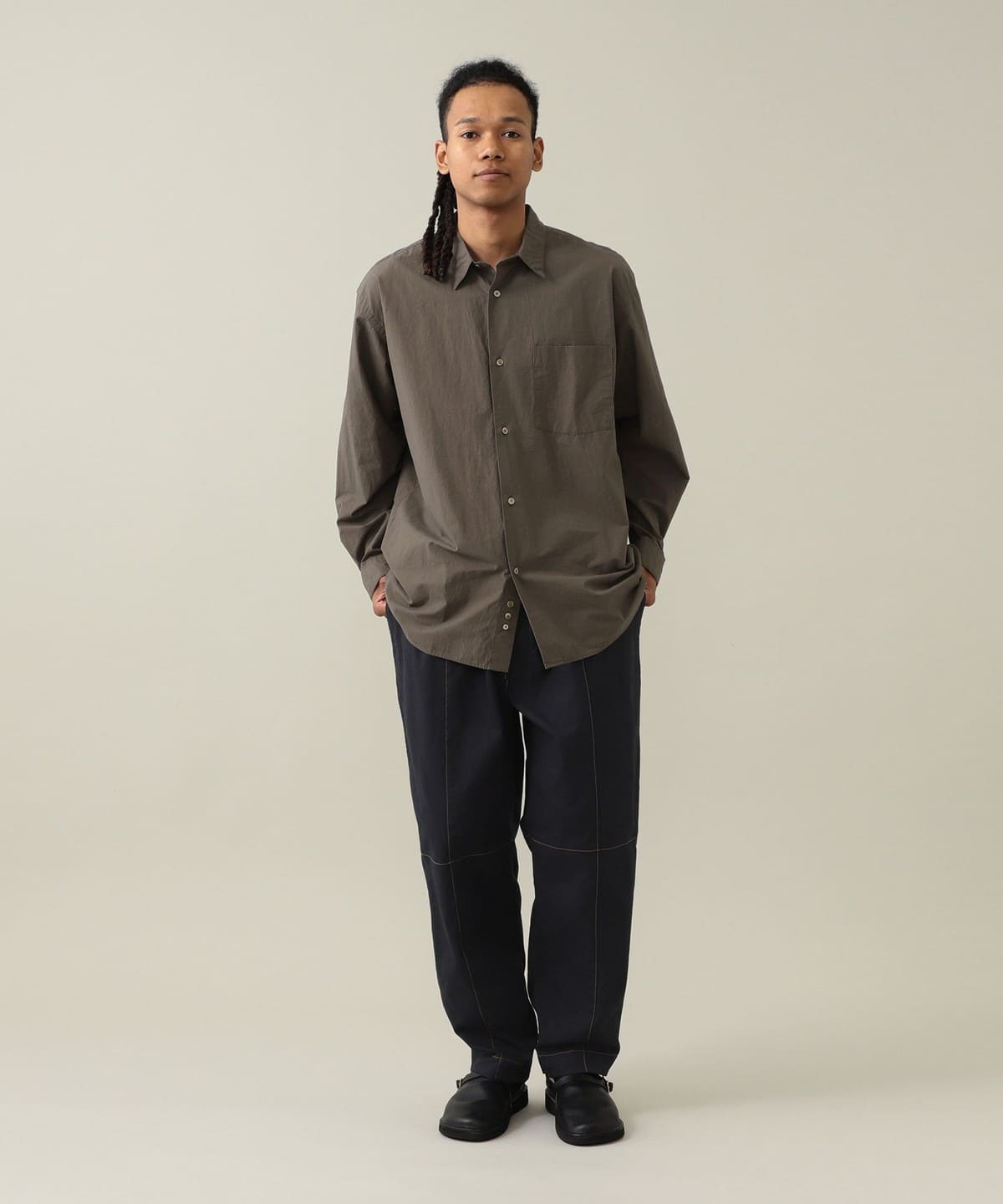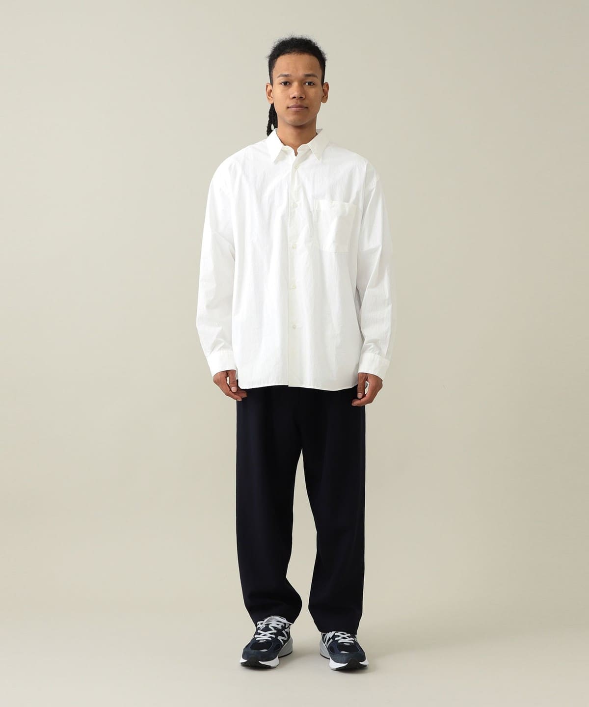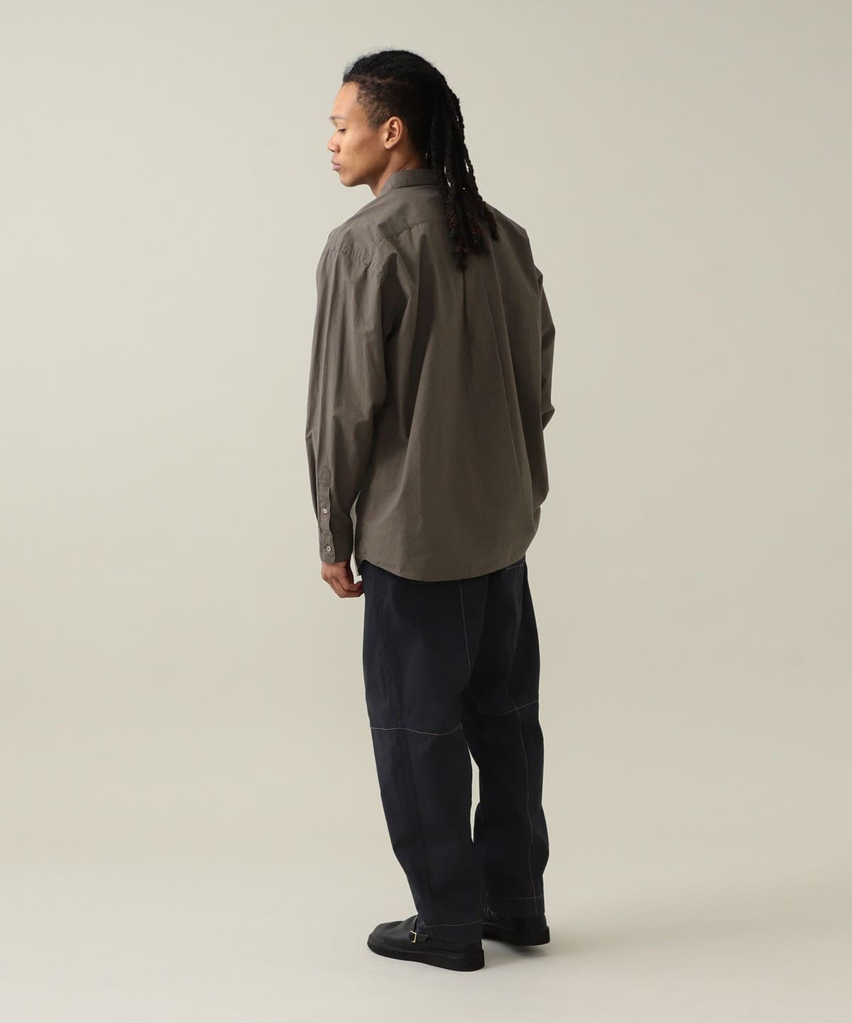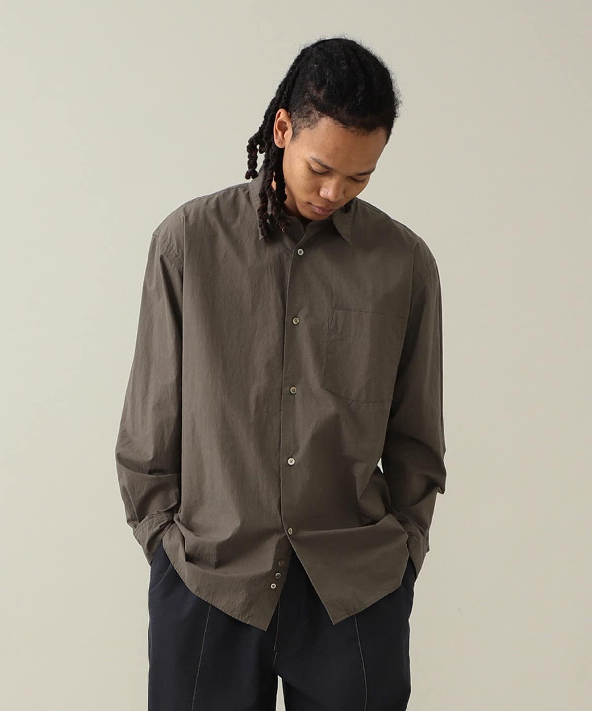 드레스 셔츠에 필적하는 정교한 봉제로 완성된 단정한 인상의 레귤러 칼라 셔츠입니다. 리락스 핏으로 여유로운 실루엣입니다.