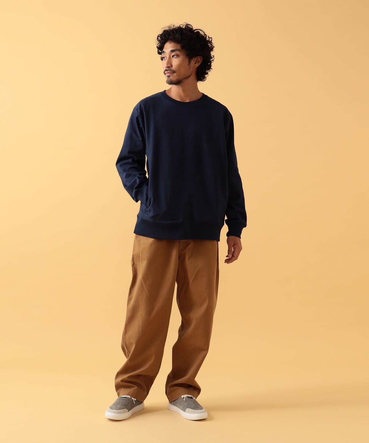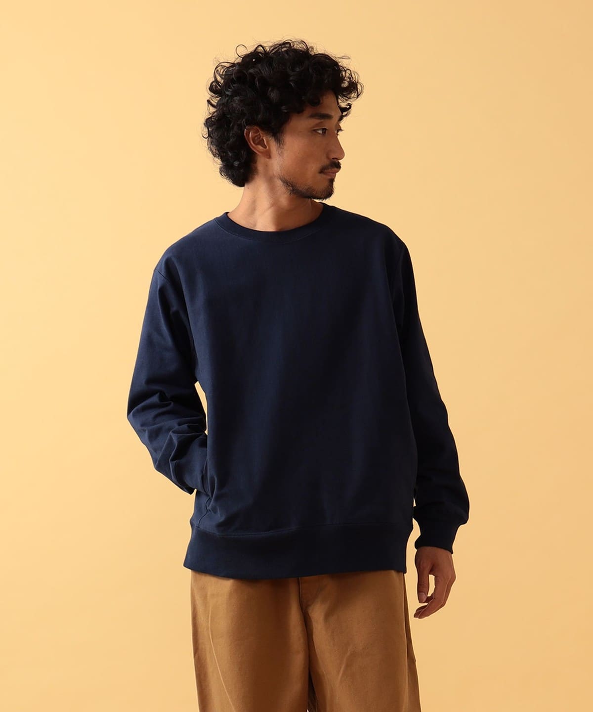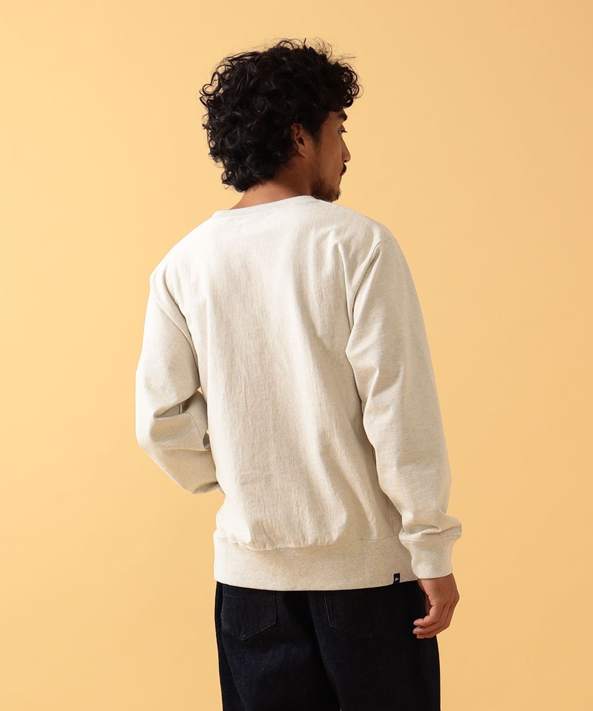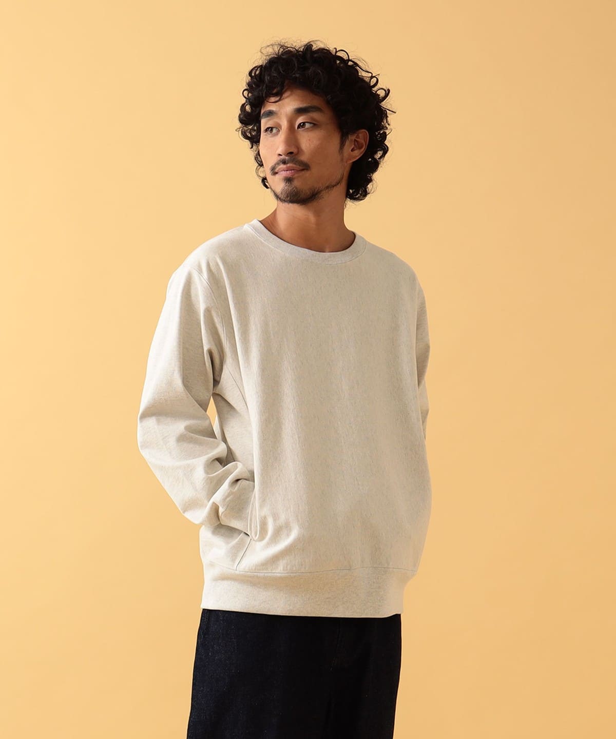 내추럴한 질감의 크루넥 티. 스루인 포켓은 양쪽 솔기 라인에 있습니다. 데일리로 입기 좋은 레귤러 핏