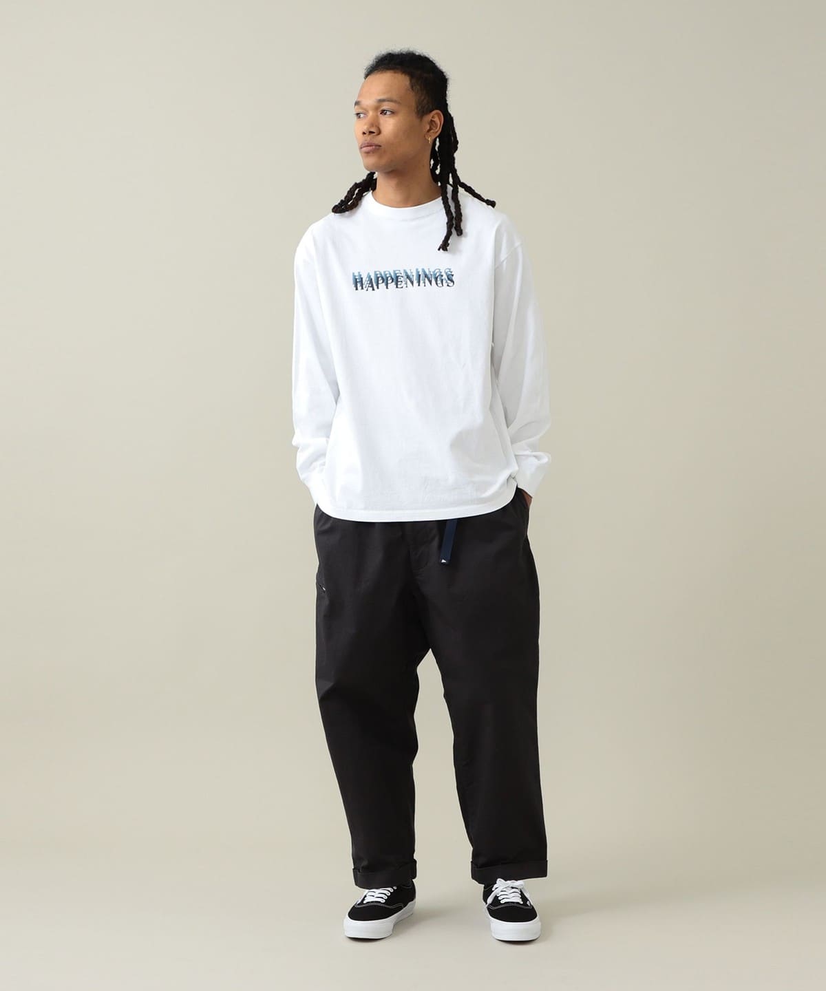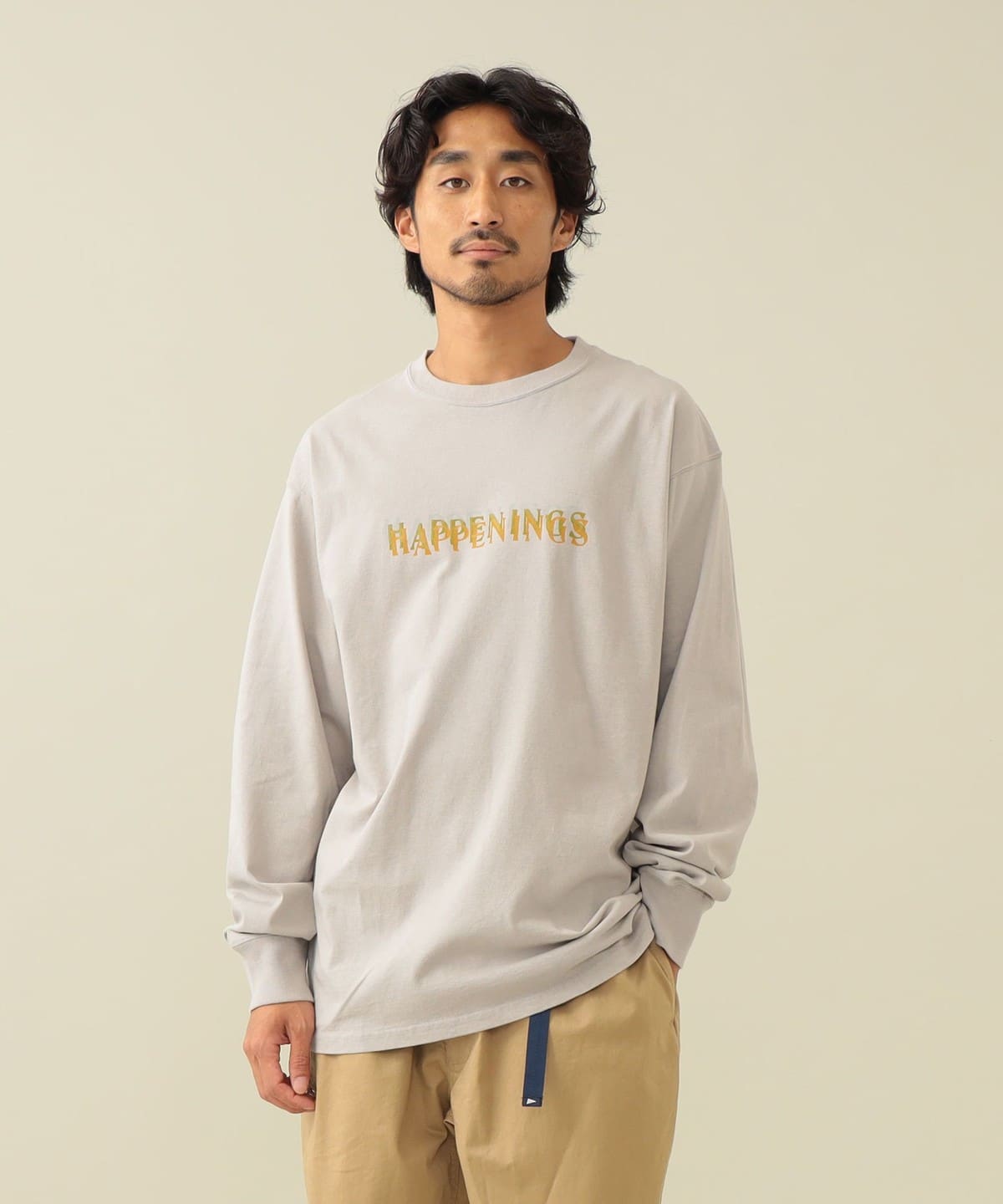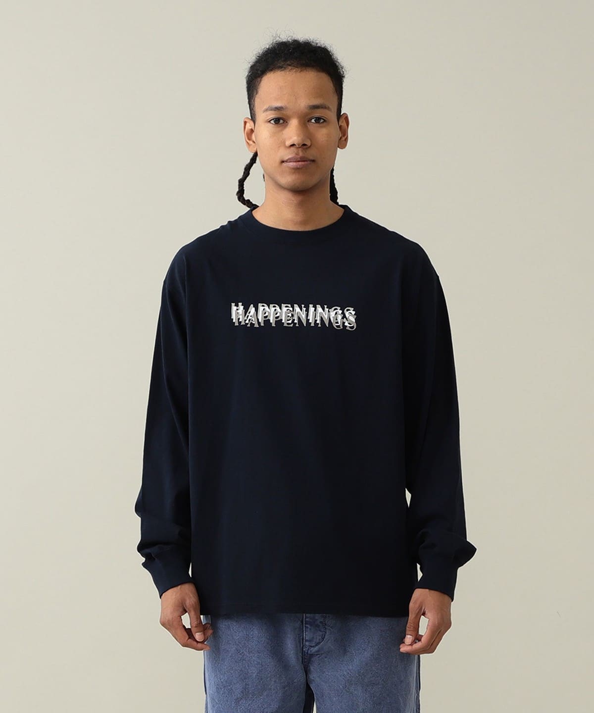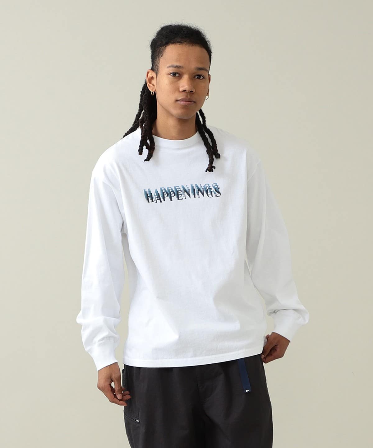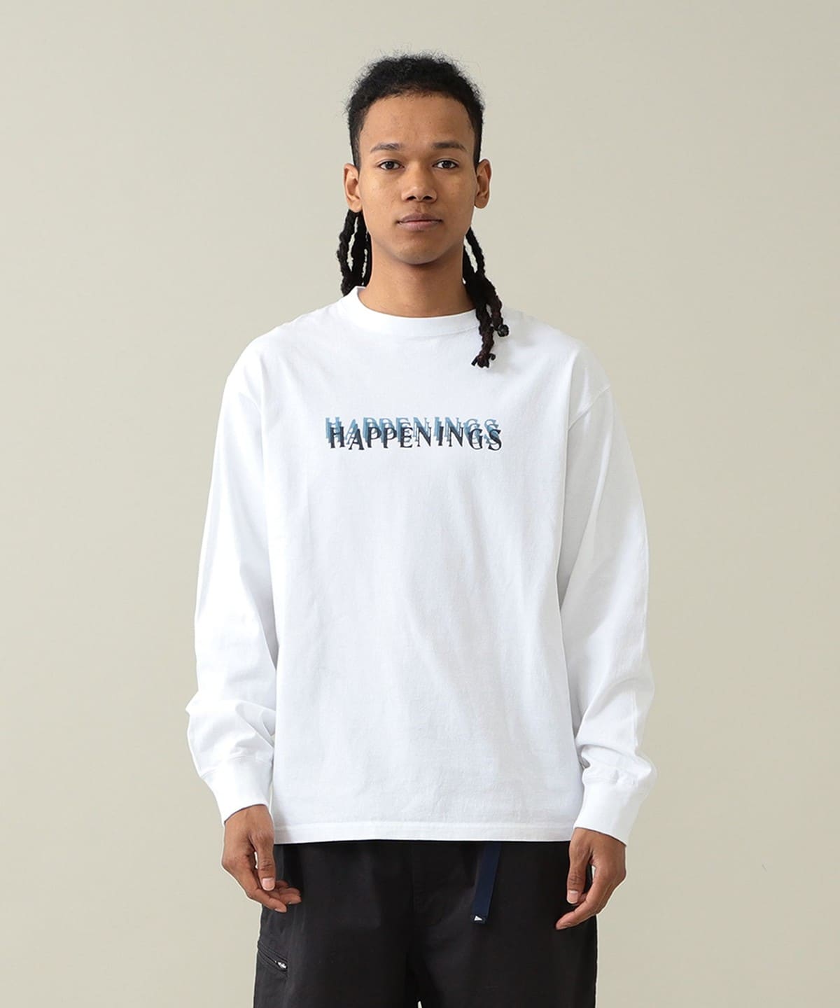 전면에 크게 프린트된 「Happenings」 레터링 이 시선을 사로잡는 롱슬리브 티셔츠. 레귤러핏