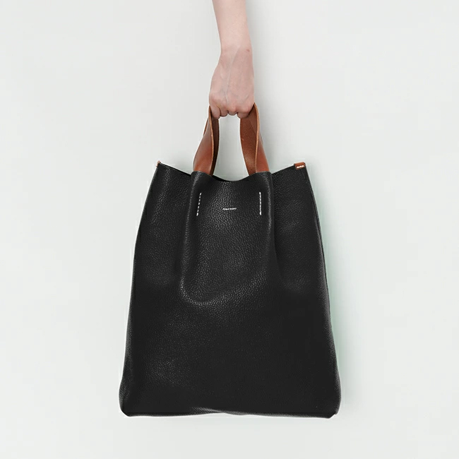 손잡이는 손바느질로 핀치 되어 있고 심플하면서도 독특한 디자인의 가방입니다. 본체 부분은 약 2.0mm 의 그레인 가죽으로 탄력있는 감촉의 소가죽입니다. 손잡이는 퍙퍙한 탄력과 자연스러움이 특징인 베지터블 무두질 소가죽으로 사용할수록 독특한 색상변화를 느낄 수 있습니다.