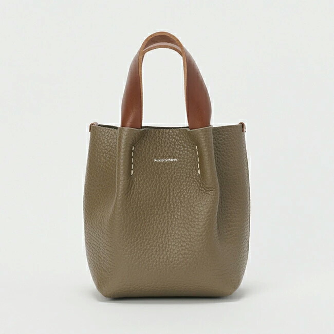 둥글고 부드러운 실루엣의 토트백. 최소한의 장식과 그레인 가죽의 질감이 결합된 미니멀한 디자인입니다.